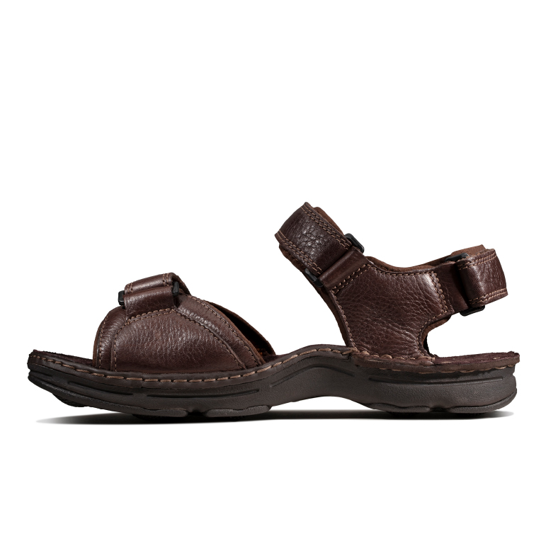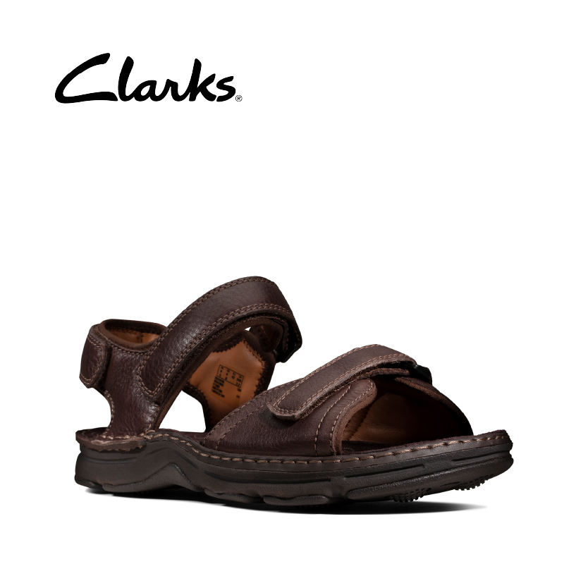 Clarks Atl Part Dark Brown Lea Flat Sandals Mens Casual