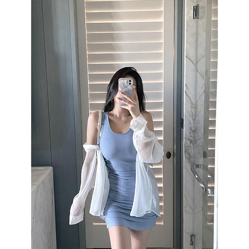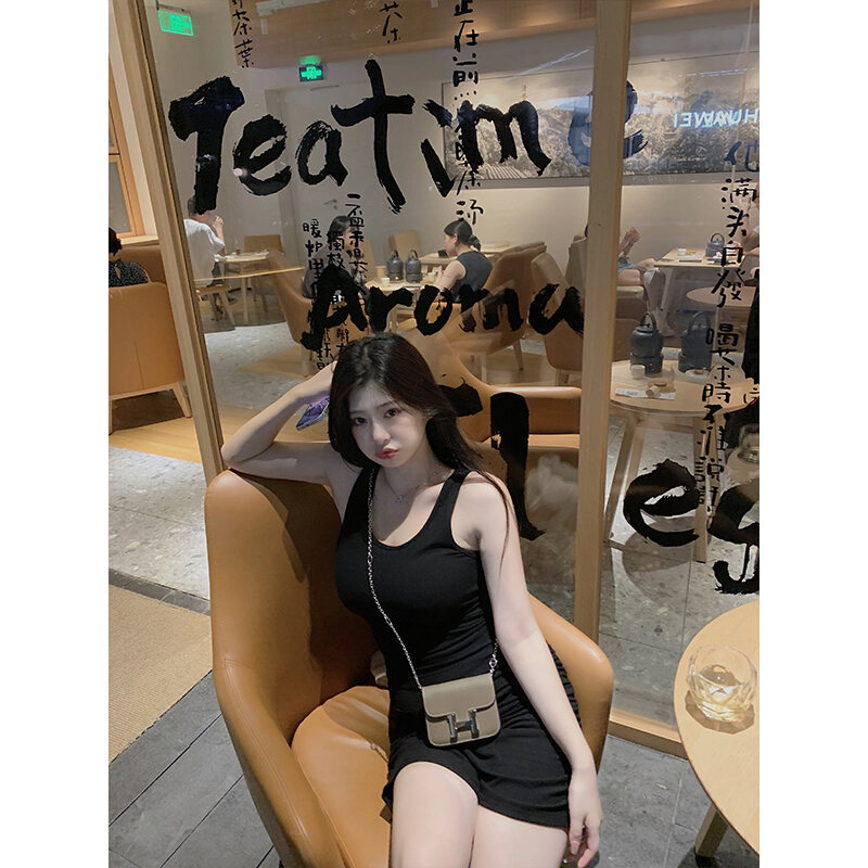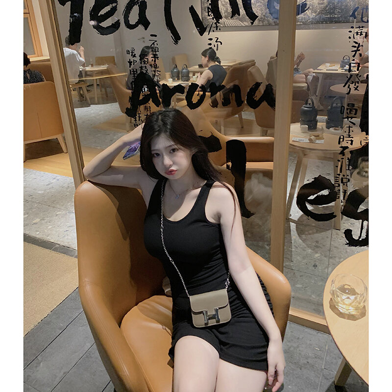 Zhou Baizi for You2022 New Fashion Slim Knit Vest Dress Women's Bag Hip Sexy Dress