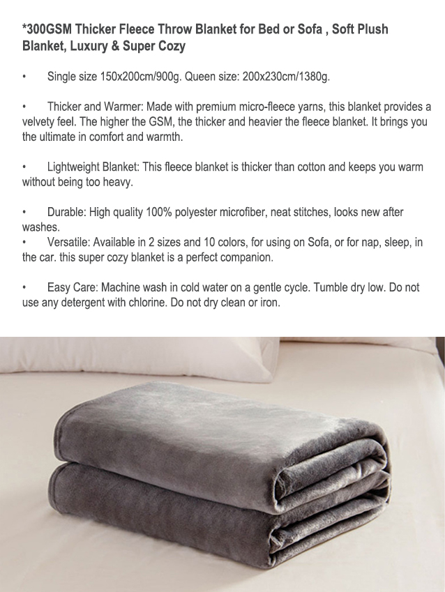 300GSM Thicker Fleece Throw Blanket for Bed or Sofa , Soft Plush Blanket, Luxury & Super Cozy