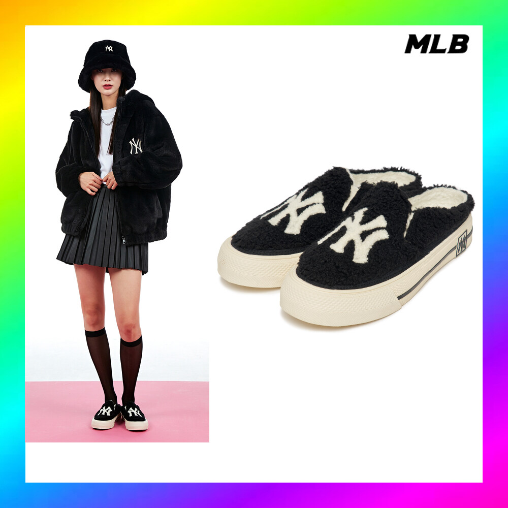 MLB Korea Unisex Sneakers Shoes Mule Fleece Basic LA Black