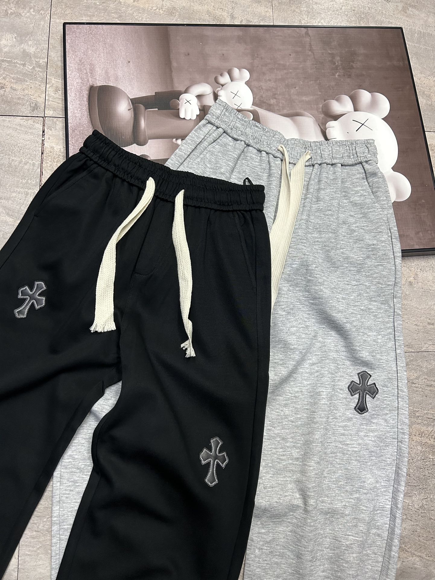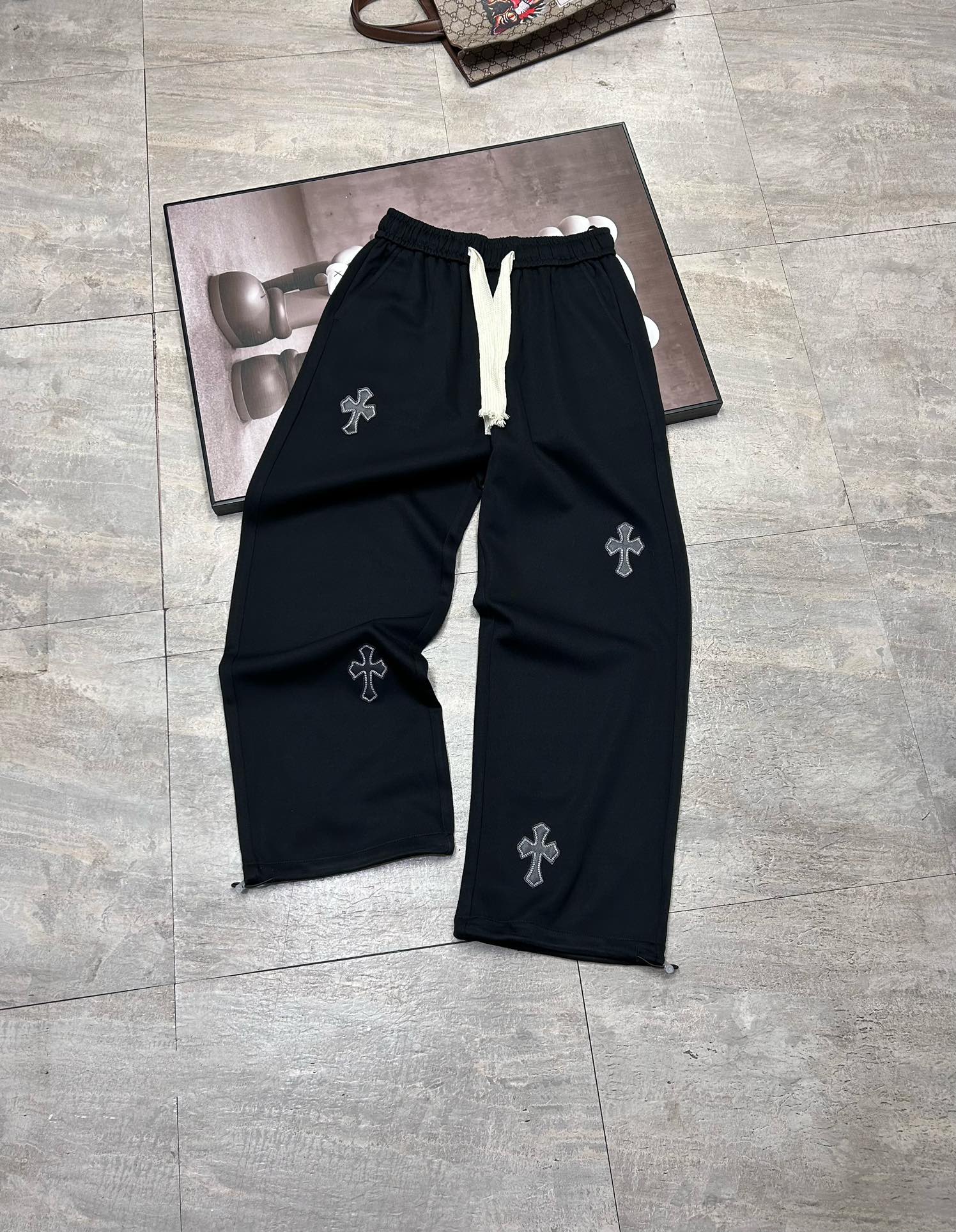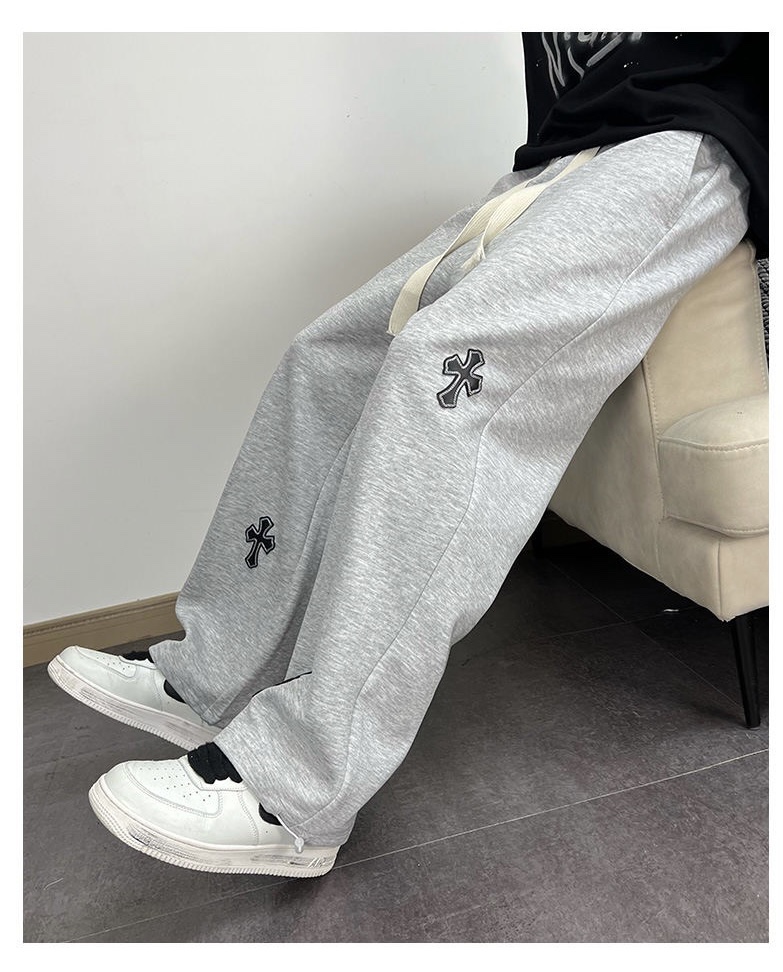 The Latest C~Hearts Pure Cotton Ins Fenggao Street Mopping Wide Leg Trousers with Cross Leather Label