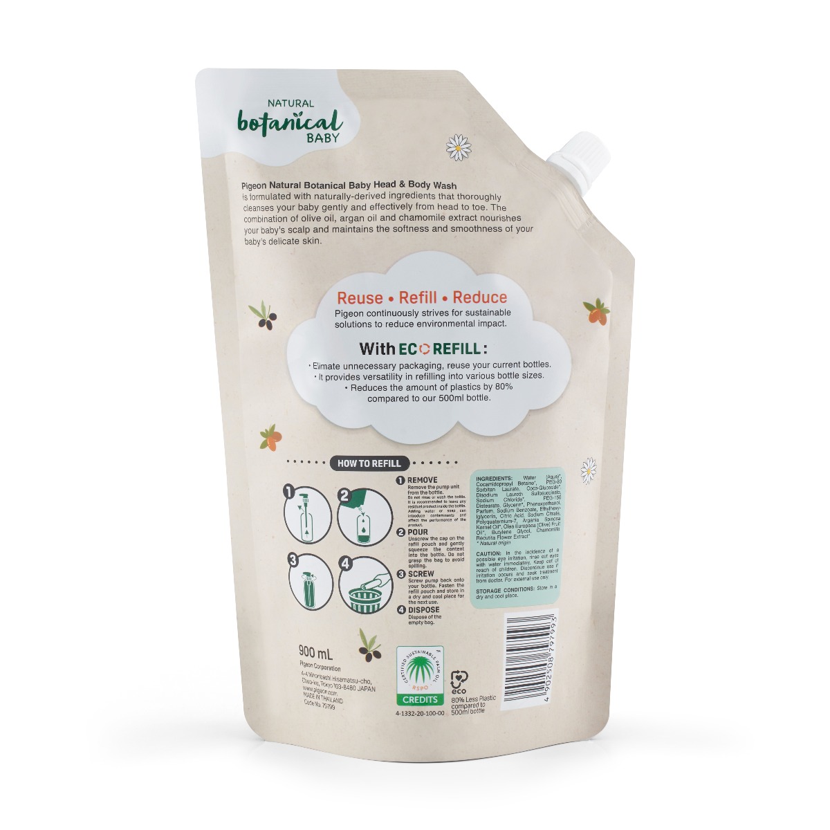 PIGEON NATURAL BOTANICAL BABY HEAD & BODY WASH REFILL 900ML