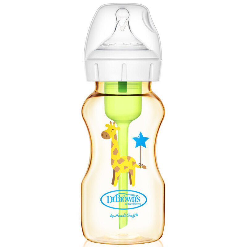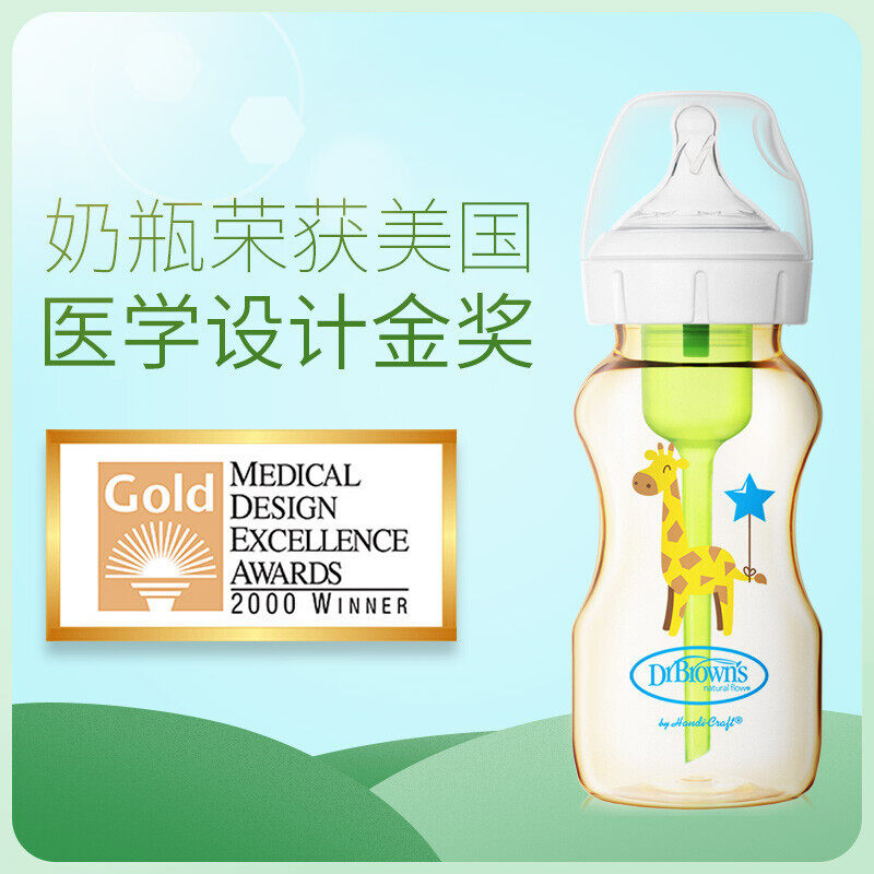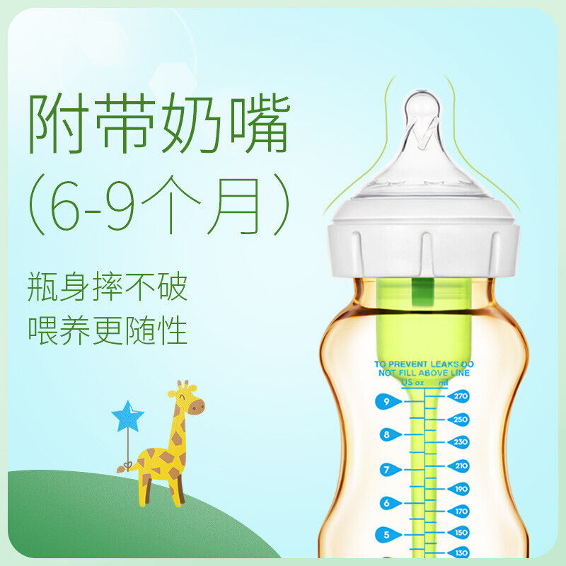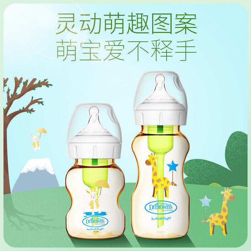 KINDLYS Baby Bottle Dr. Brown's Aibao selection series baby wide-caliber PPSU cartoon feeding bottle is easy to withstand falling and anti-flatulence feeding bottle