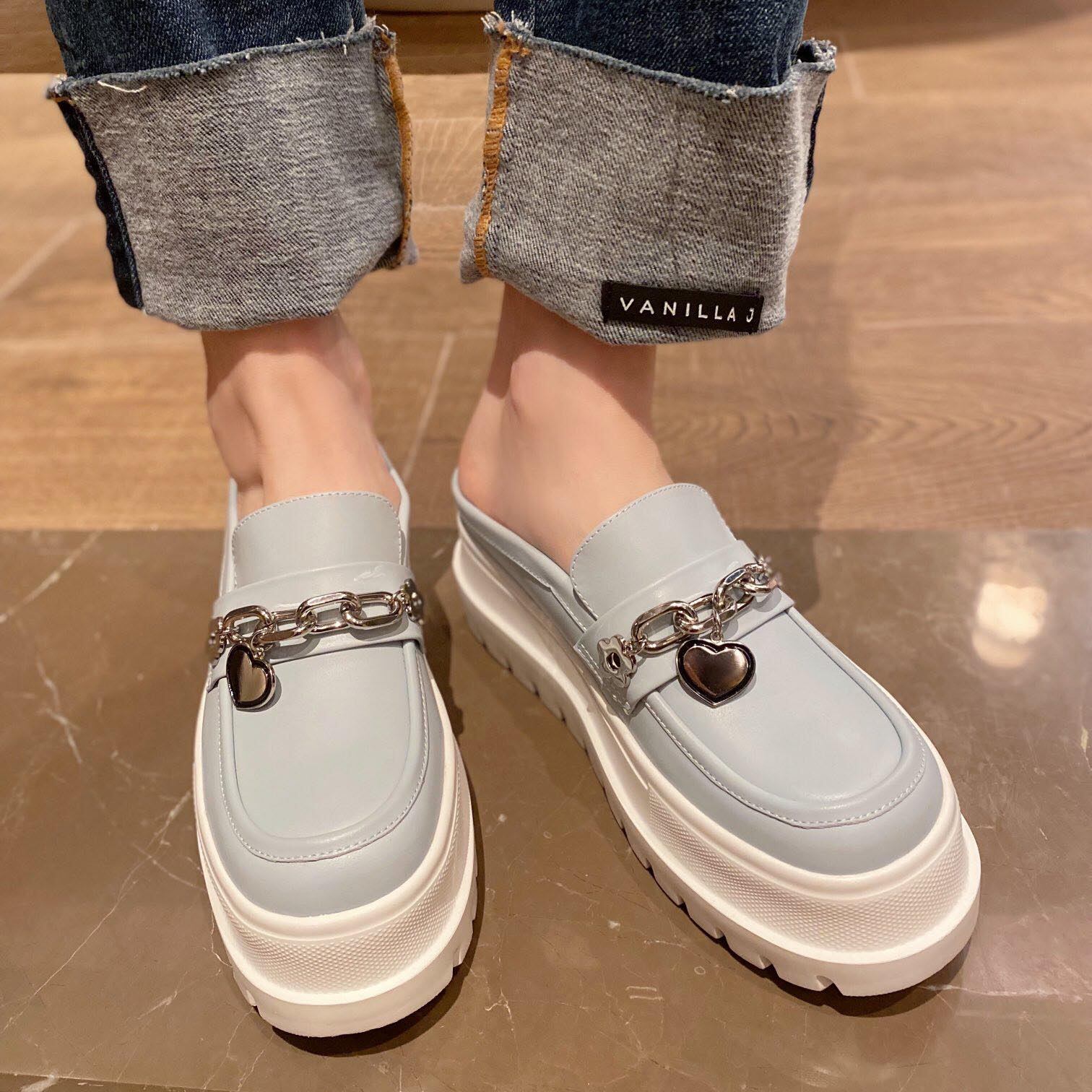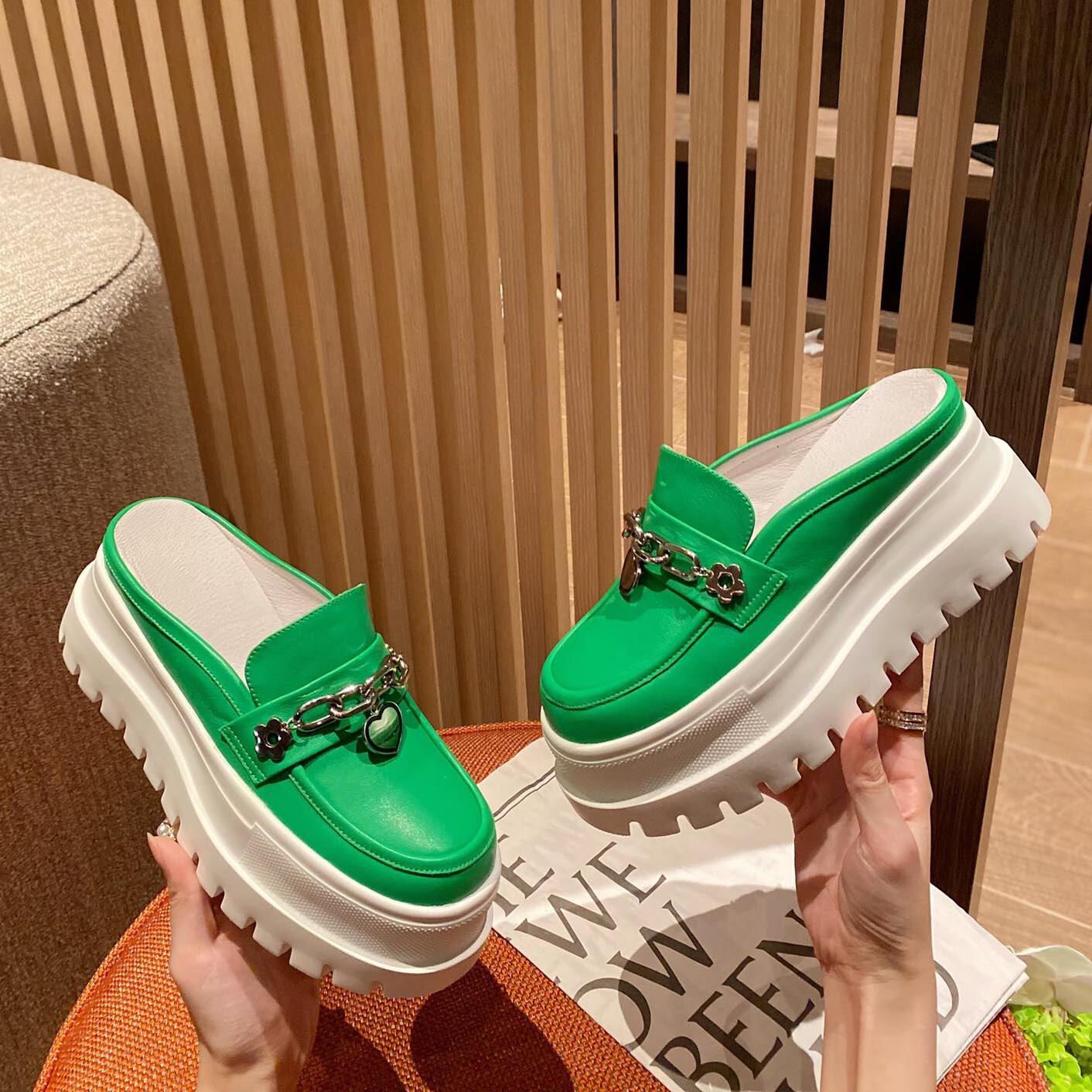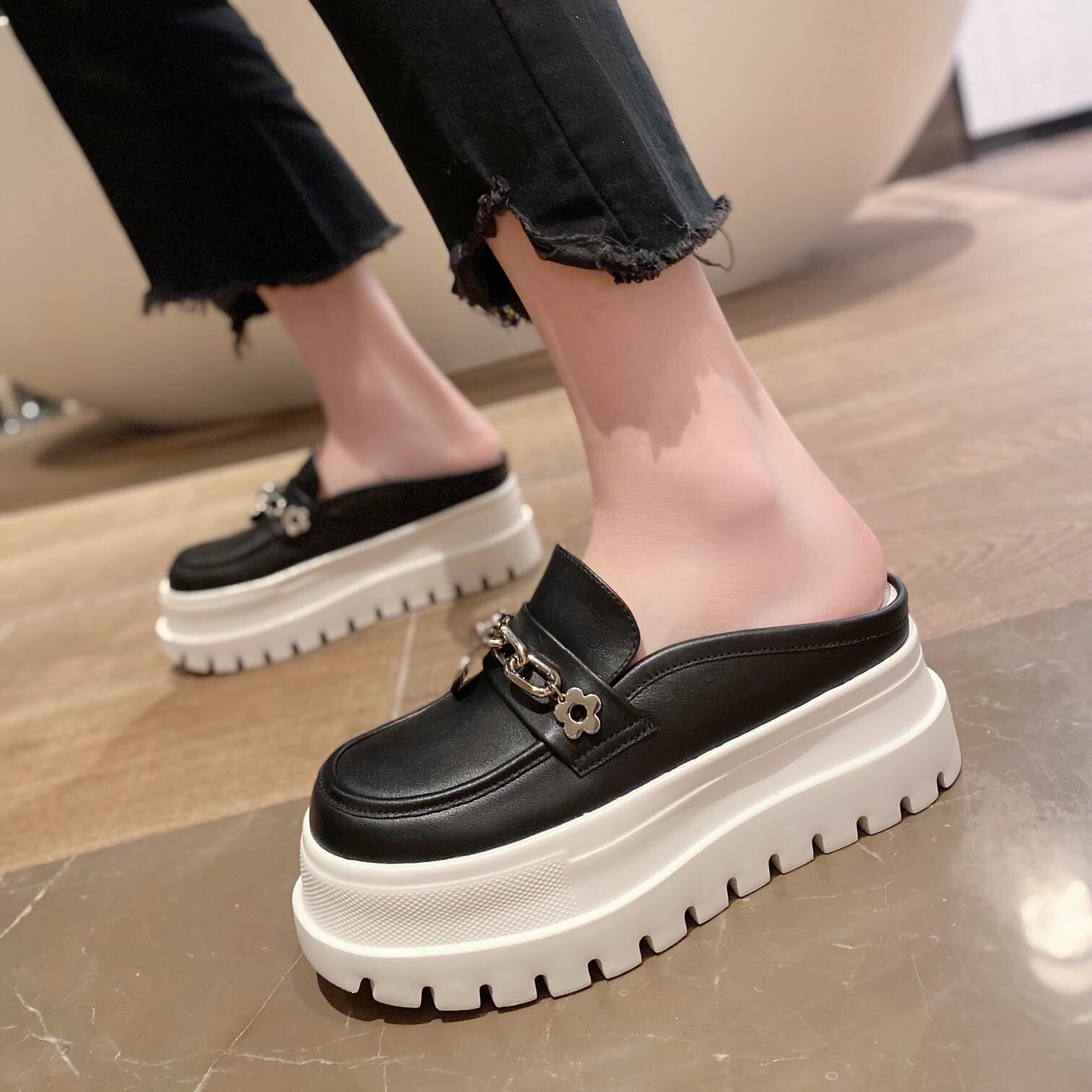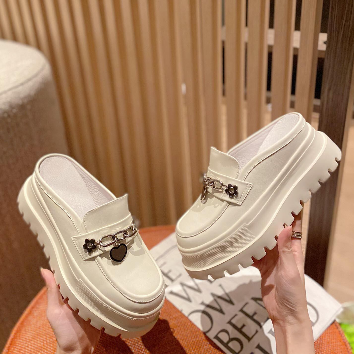 Spring and Summer 2023 New Invisible Elevated Muffin Shoes Personalized Metal Women's Slippers Genuine Leather Fashion Korean Style Bag Head Women's Shoes