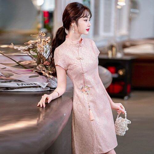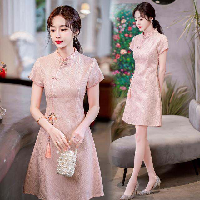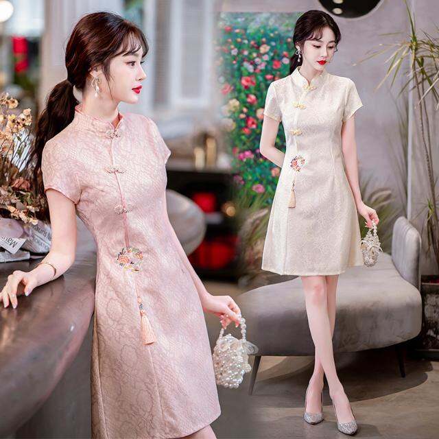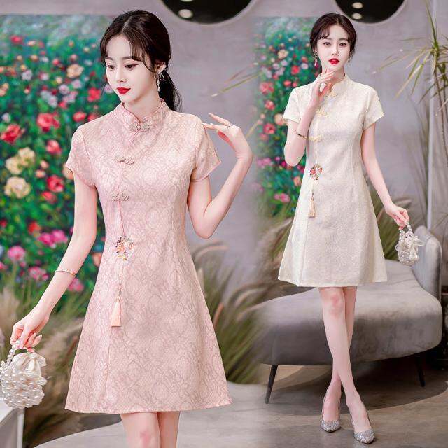 Ma 2023 Summer New Improved Cheongsam High-End Chinese Style Retro Girl Light Waist Trimming Short-Sleeved Dress
