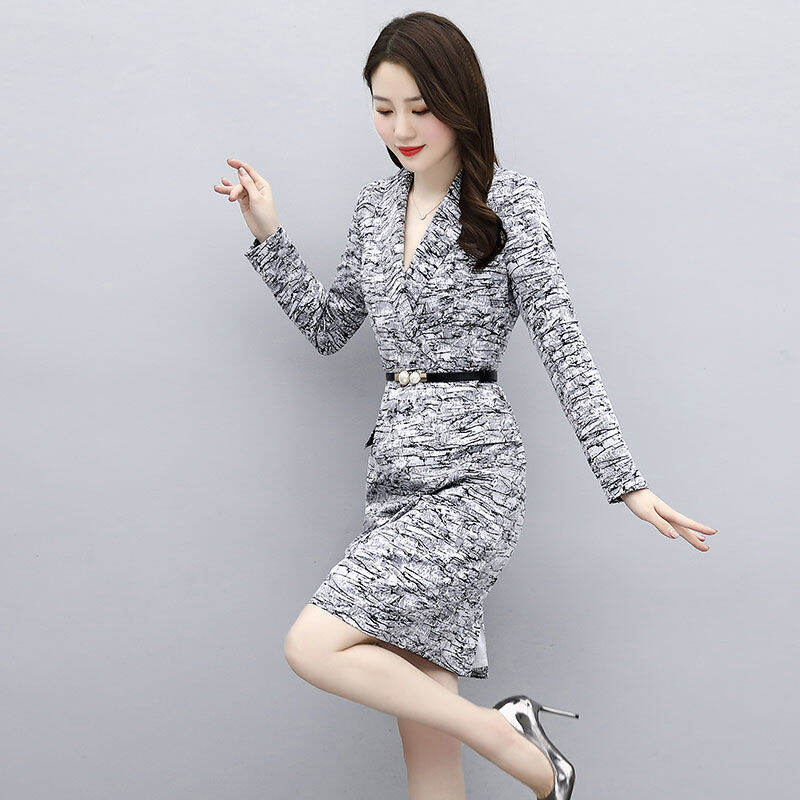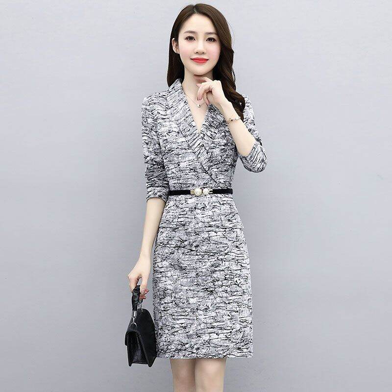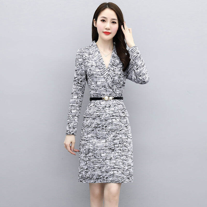 Ma High-End Dress Female 2023 Spring New Mid-Length Fashion Waist-Controlled Slimming Elegant Dress