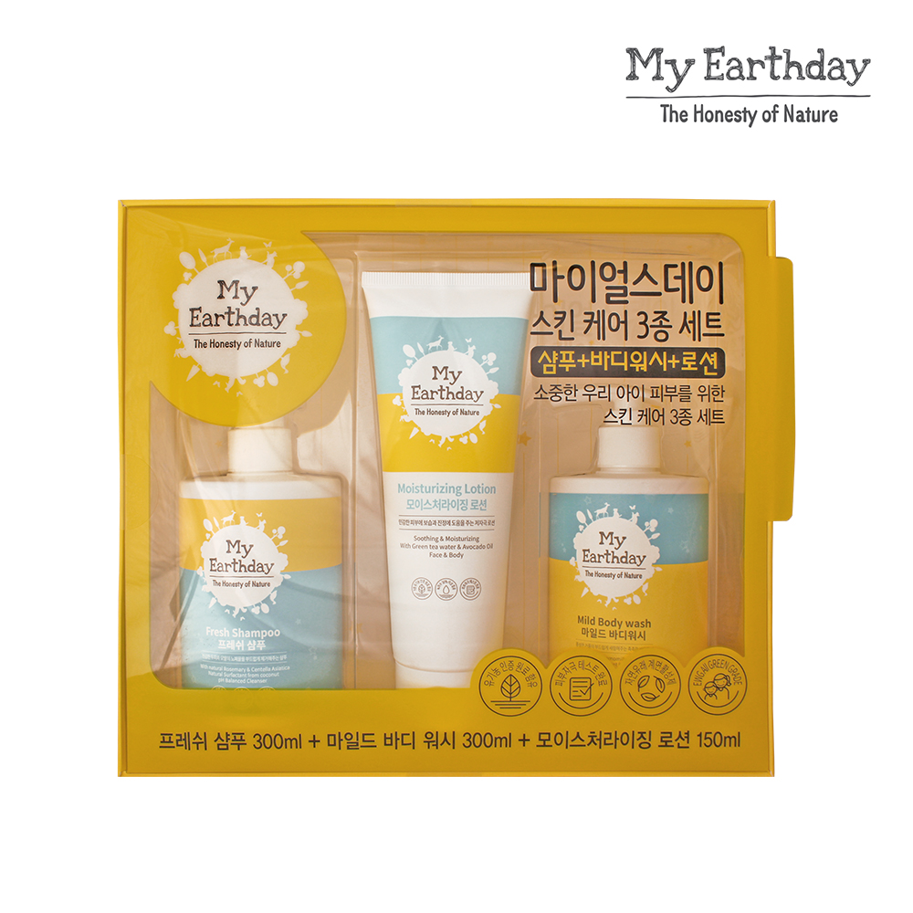 MyEarthday Shampoo 300ml + Body wash 300ml + Lotion 150ml formulated for Baby & Kids Hypoallergenic, Soothing & Moisturizing 150ml
