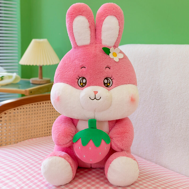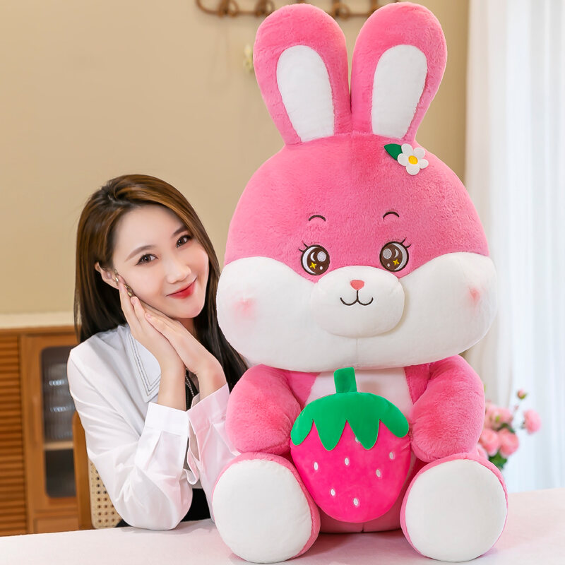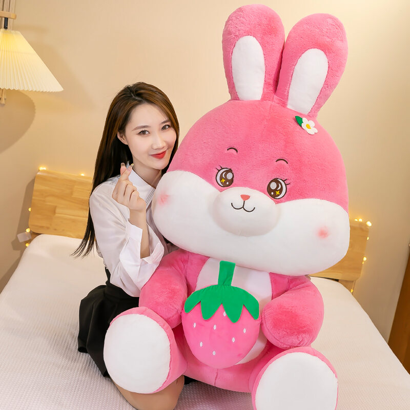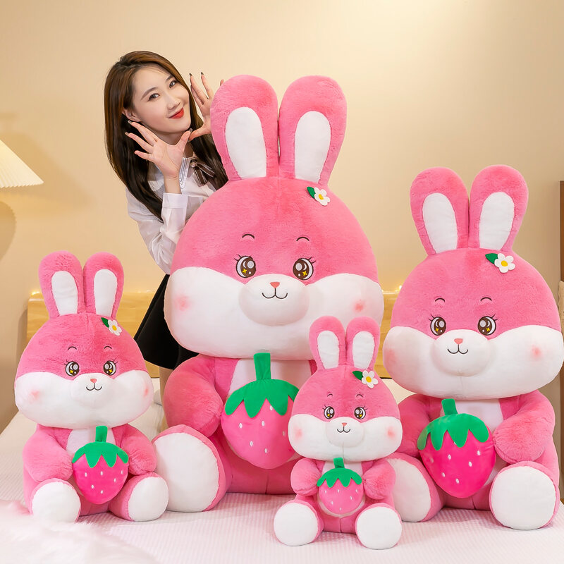 Cute Strawberry Rabbit Doll Plush Toys Bunny Children Doll Large Chinese Zodiac Sign of Rabbit Birthday Gift for Girlfriend