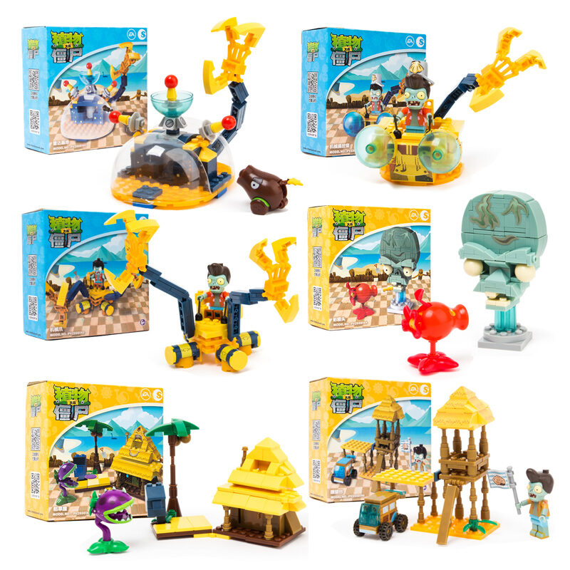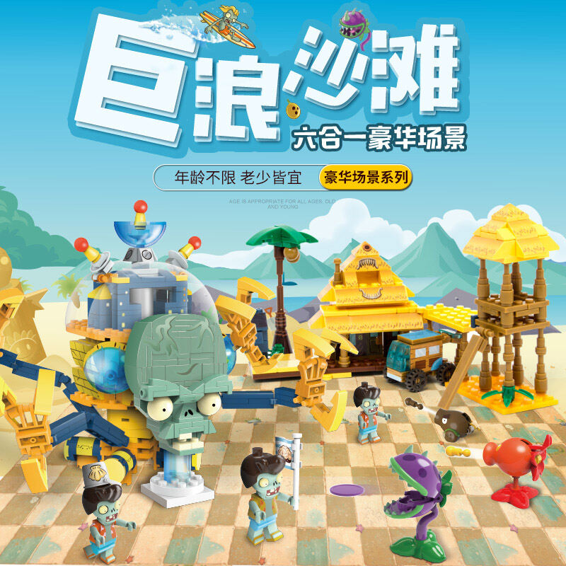 Plants Vs. Zombies Waves Beach Scene Building Blocks Zombie Boss Robot Assembling and Inserting Monster Boys' Toys