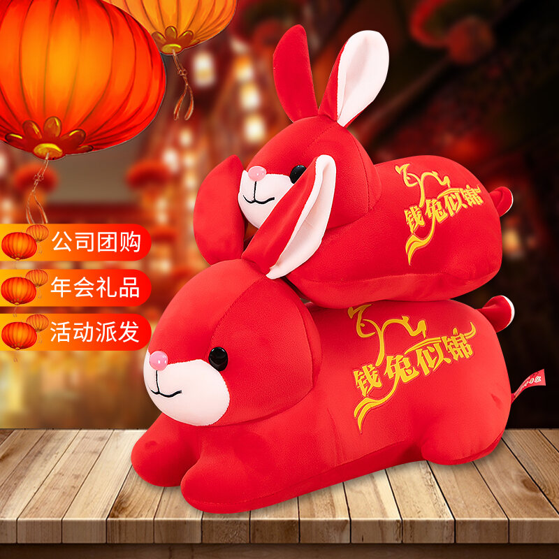 Year of Rabbit Mascot Doll Plush Toys Simulation Small Lying Rabbit Doll Kindergarten Class Meeting Annual Meeting Activity Gift