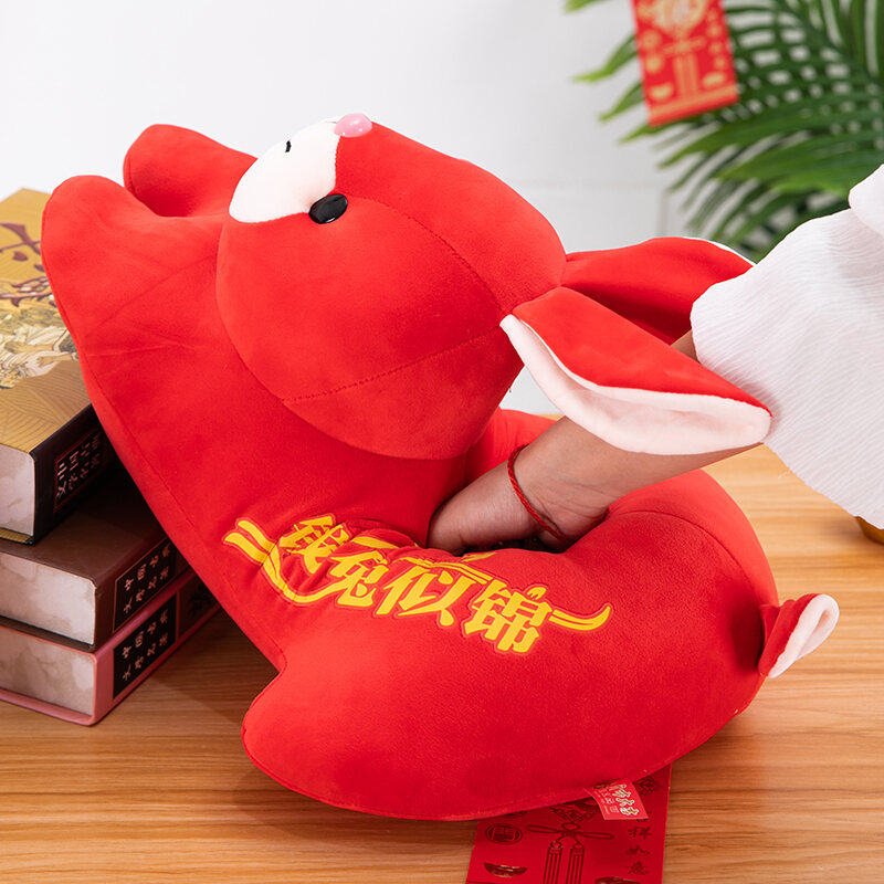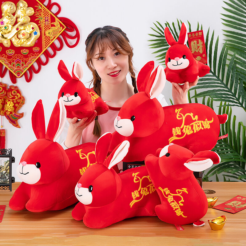 Simulation Small Lying Rabbit Red Plush Toy Rabbit Doll Annual Meeting Mascot Chinese Zodiac Sign of Rabbit Doll Annual Meeting Activity