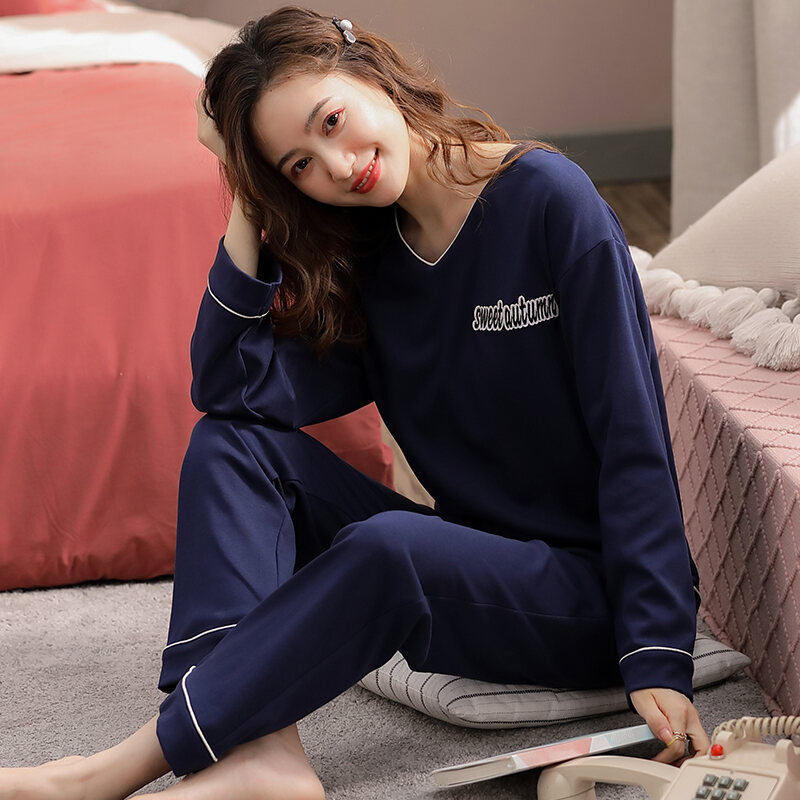 Women's Pajamas 2022 Spring and Autumn New Pure Cotton Long Sleeve Pullovers Home Wear Middle-Aged Leisure plus Size Mom Suit