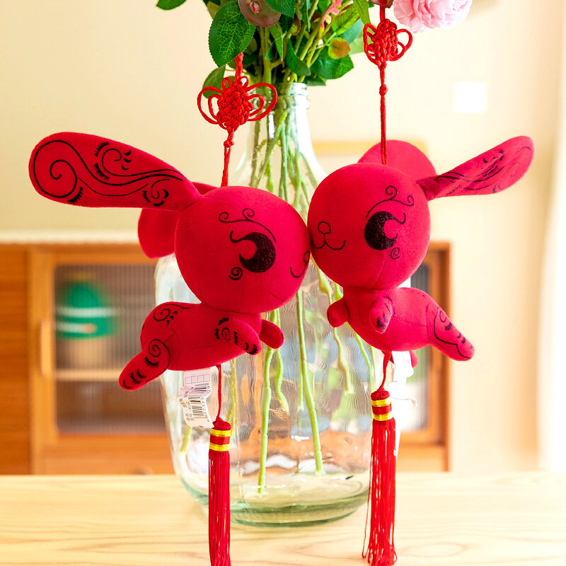 Creative Bunny Doll Small Pendant Plush Toy Chinese Zodiac Sign of Rabbit Doll Year of Rabbit Mascot Car Pendant Yuppie