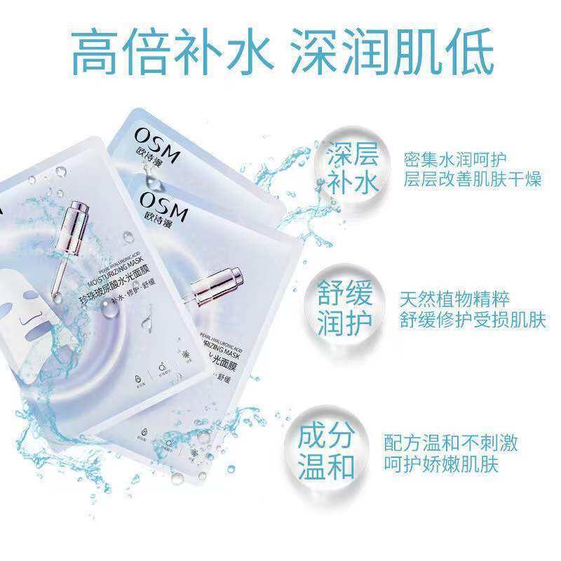 OSM Pearl Hyaluronic Acid Water Light Facial Mask Moisturizing Soothing Repair Moisturizing Brightening Flesh Color BOY'S and GIRL'S