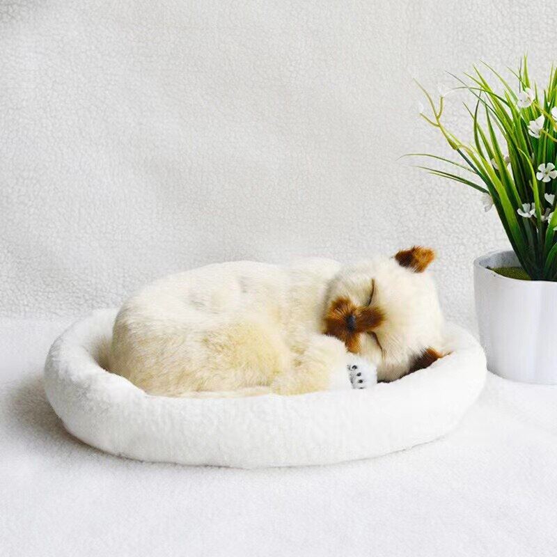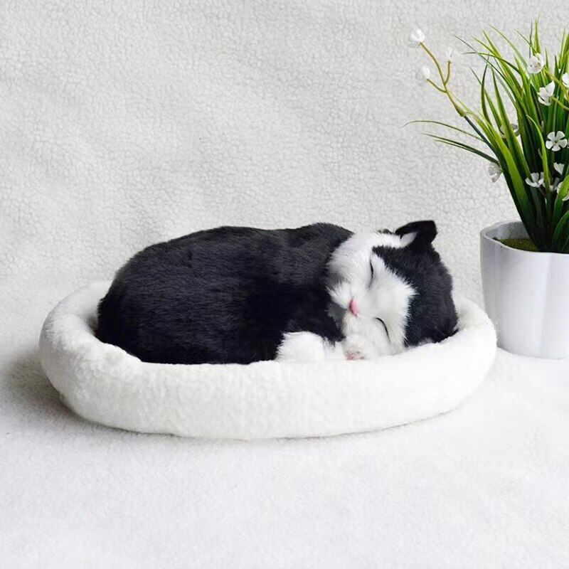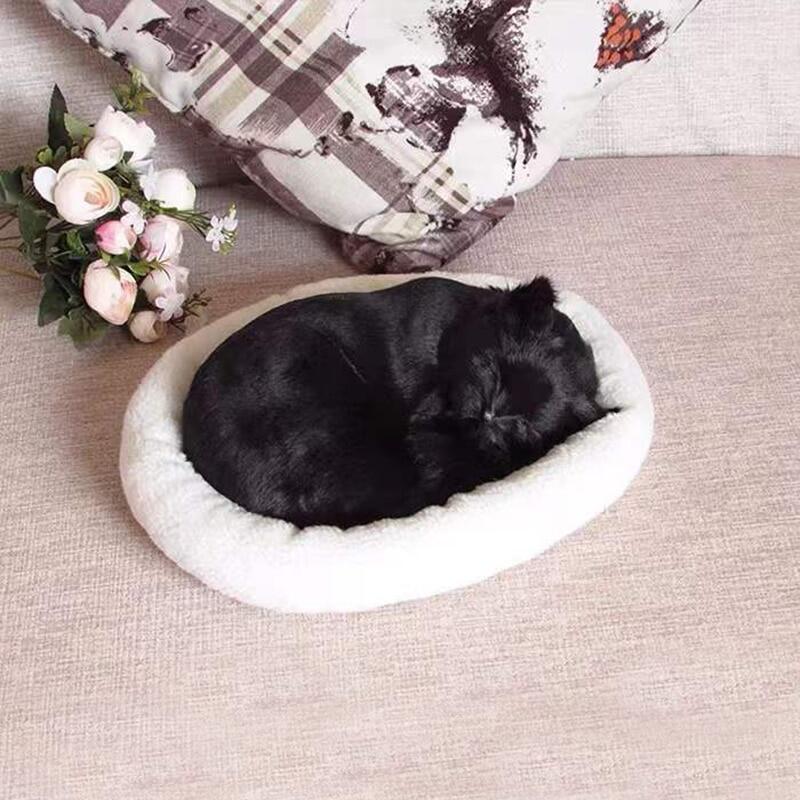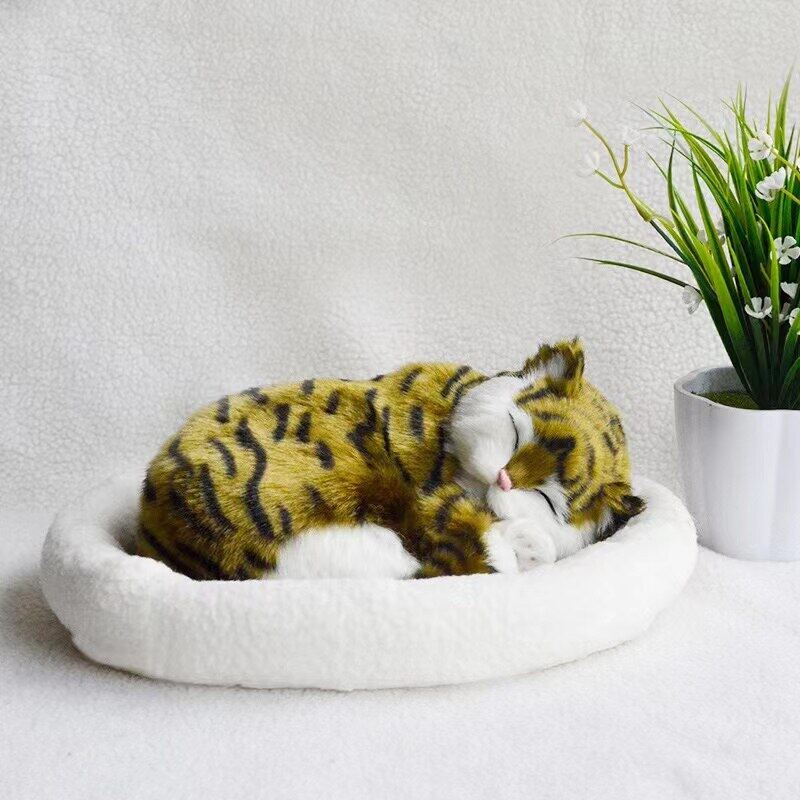 BREATHING CAT-The fake sleeping cat will begain to breathe when you turn on the switch at the bottom.The cat’s belly will move up and down.