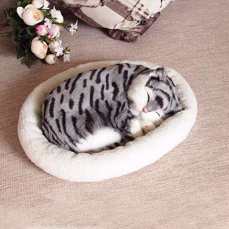 REALISTIC&SOFT&CUTE-The stuffed animal breathing are cute and lifelike,pretty soft to the touch,well made by hand.The cat and its nest are detachable,you can hold the kitten in your arms at any time.