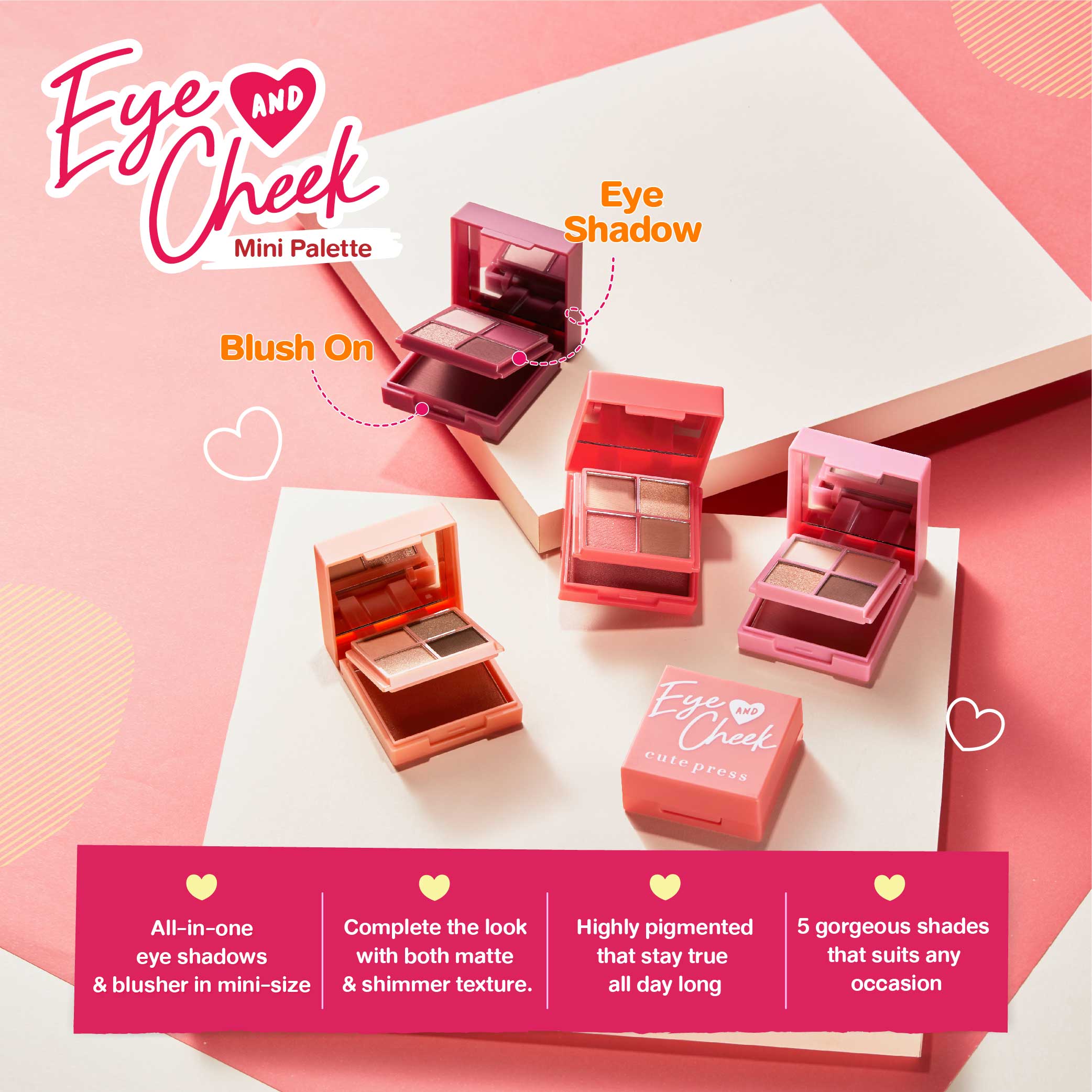 This travel-size eye and cheek palette lets you create a complete makeup look anywhere, anytime. It comes with matte and shimmer eye shadow and a blush color that perfectly matches the eye colors. Each shade is highly pigmented and lasts all day long. - All-in-one eye shadows & brusher in mini-size. - Complete the look with both matte & shimmer texture. - Highly pigmented that stays true all day long. - 5 Gorgeous shades that suit any occasion.