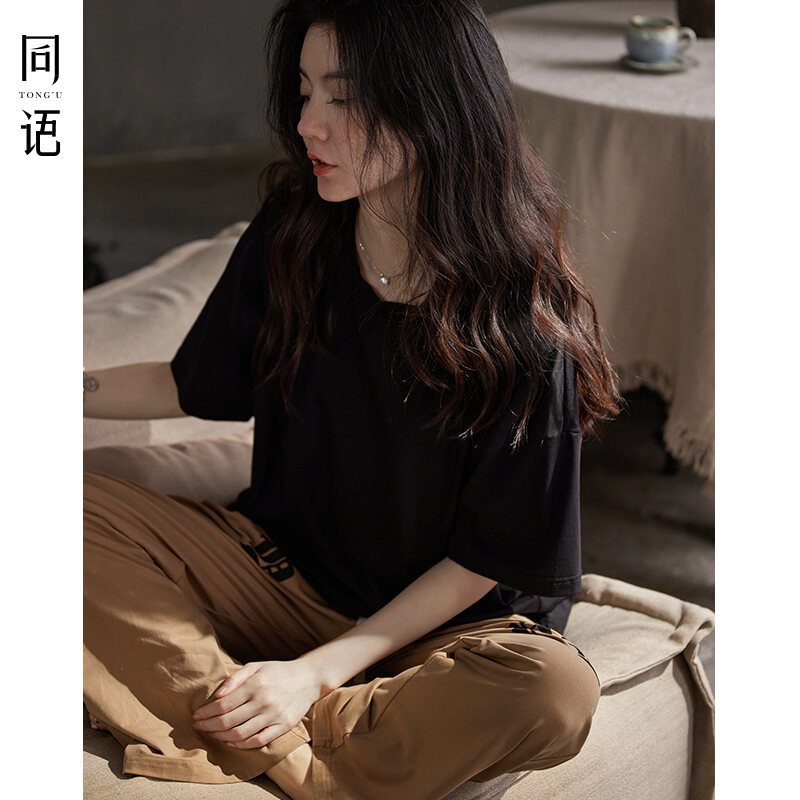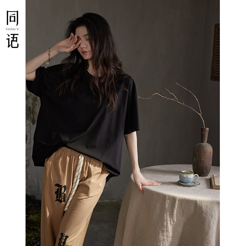 Tongyu Pajamas Women's Summer Cool Cotton Short-Sleeved New Suit Women's Fashion Casual Suitable for Daily Wear Summer Home Wear