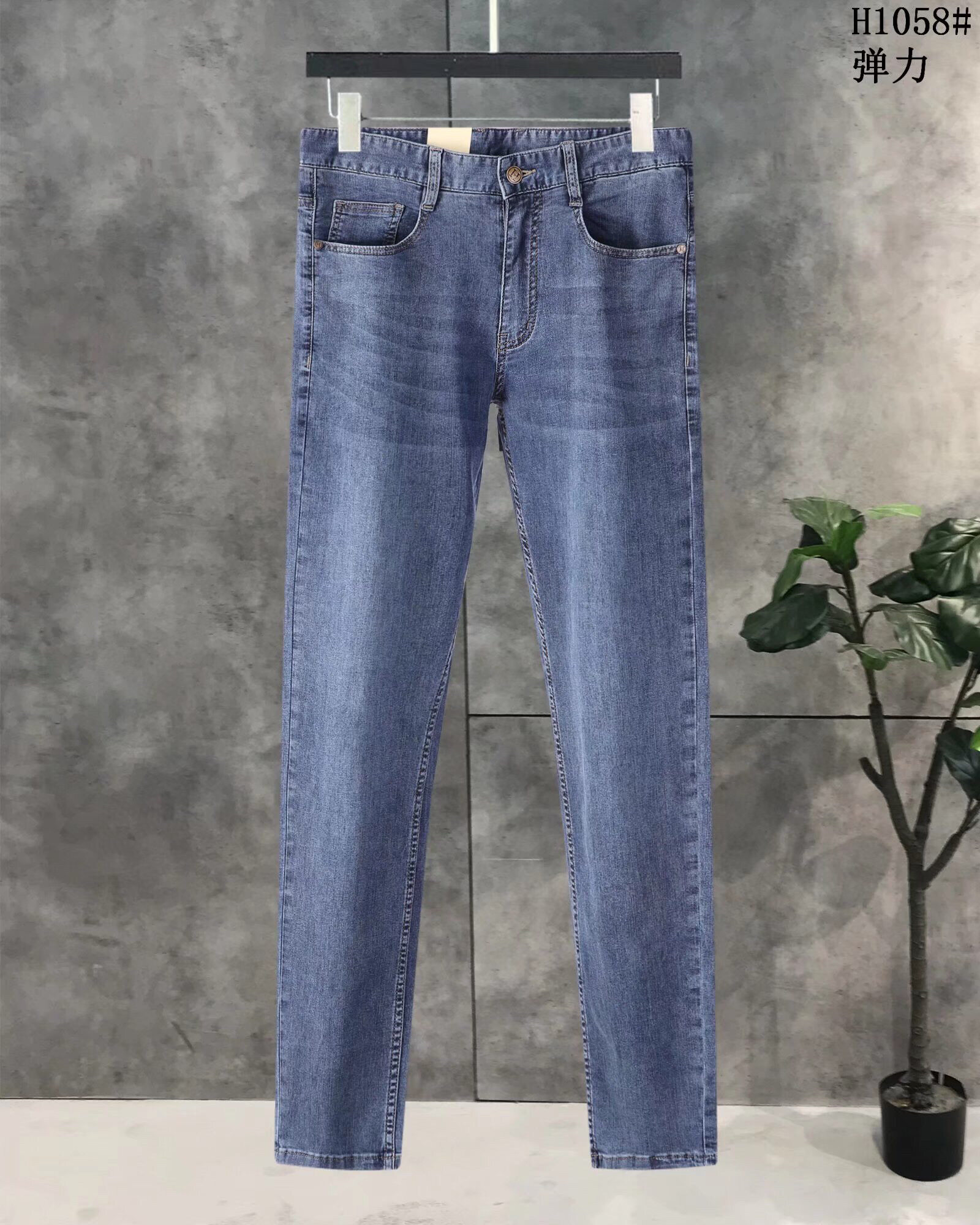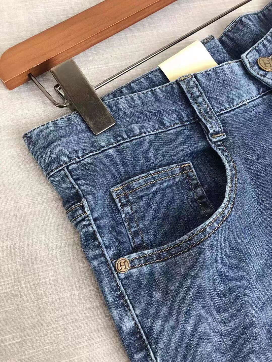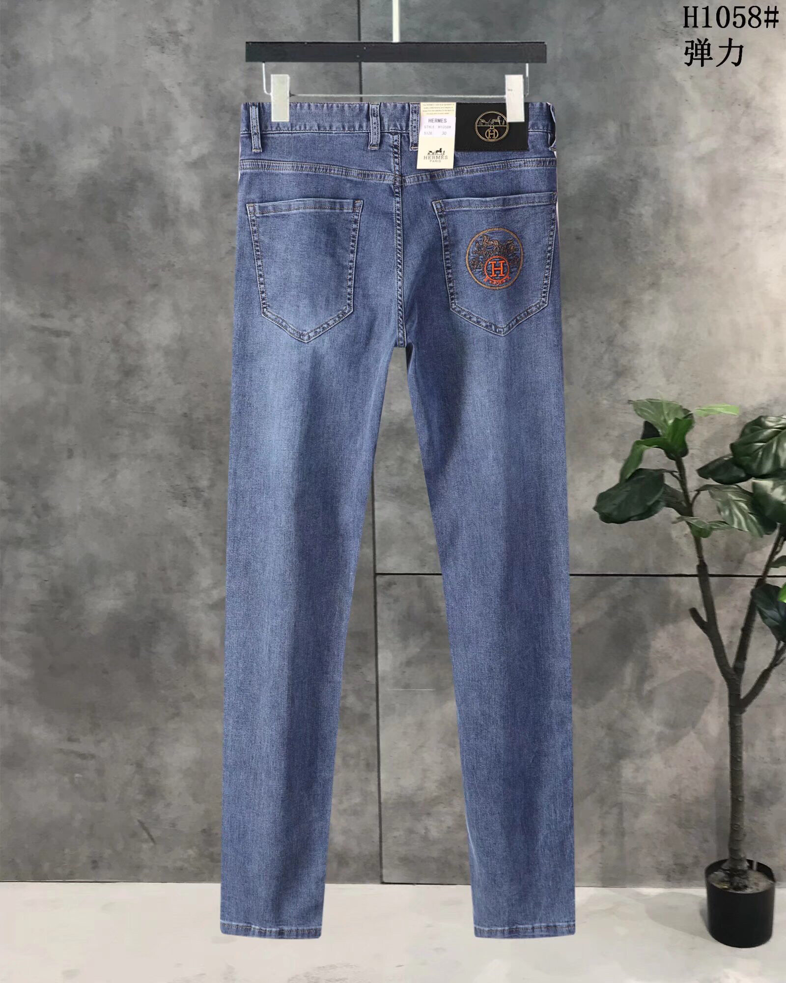 Original Hermesˉ Men's Stretch Jeans Classic Style Straight Pants Business Fashion Slim Jeans Men's Brand Casual Trousers