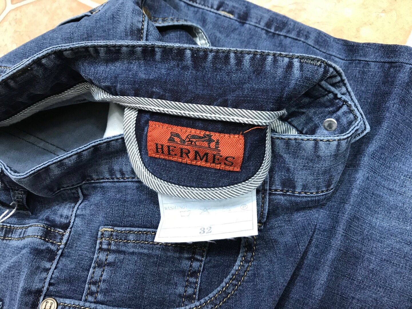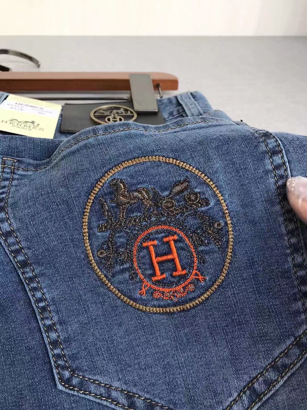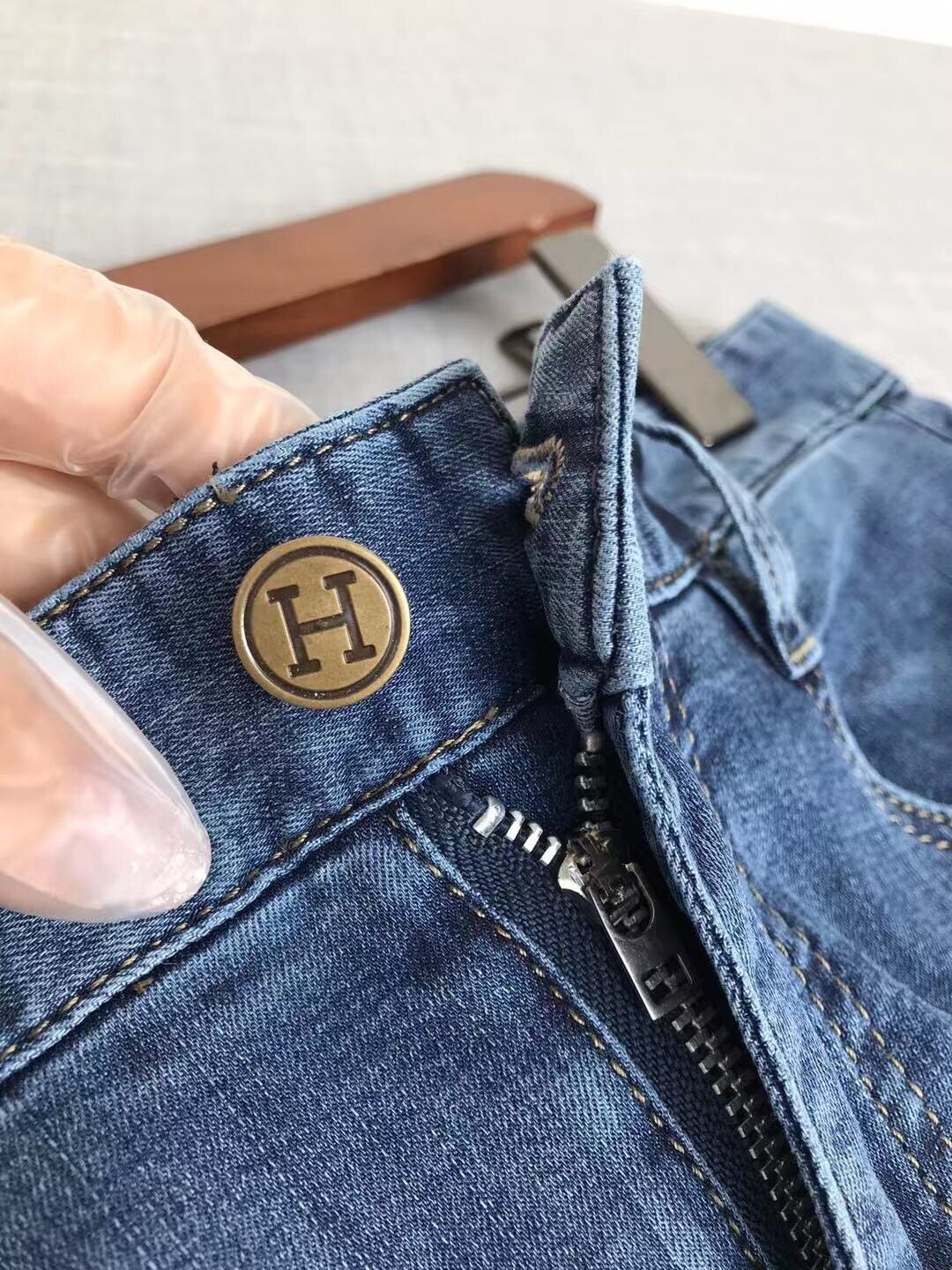 Original Hermesˉ Men's Stretch Jeans Classic Style Straight Pants Business Fashion Slim Jeans Men's Brand Casual Trousers
