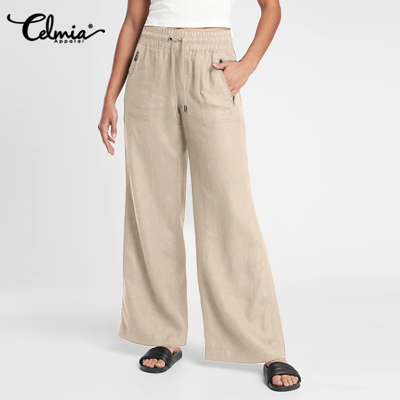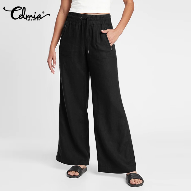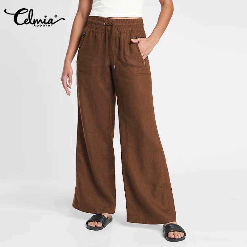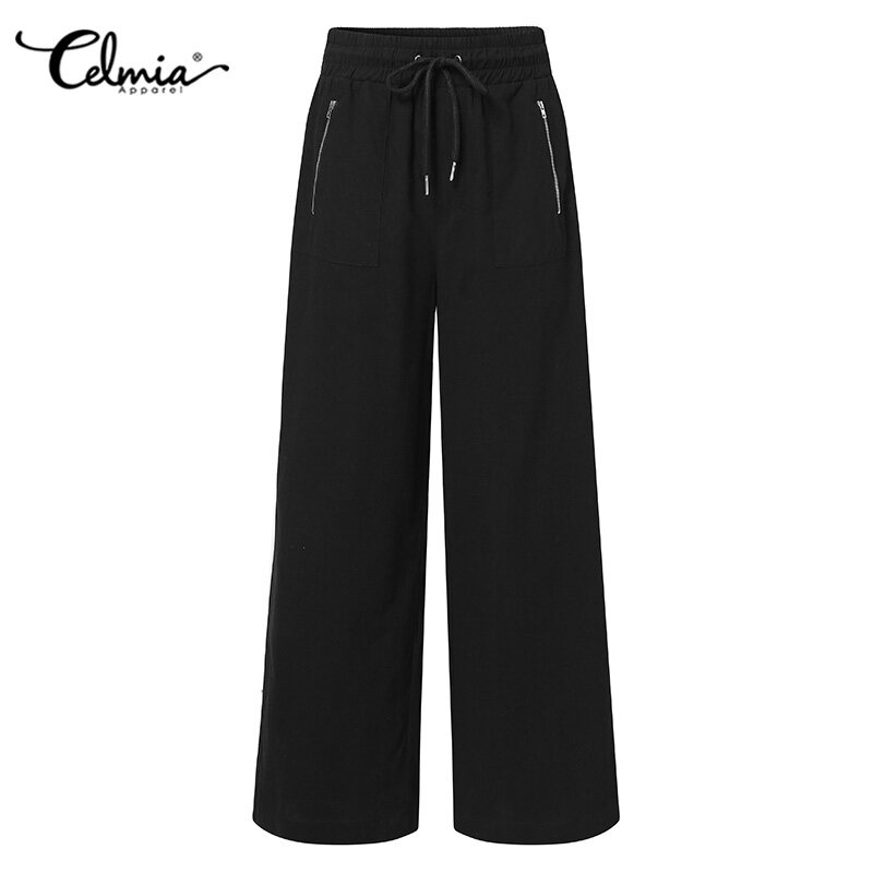【Clearance Sale】Women Celmia Women Wide Leg High Waist Palazzo Casual Baggy Holiday Yoga Flared Pant Trousers #15