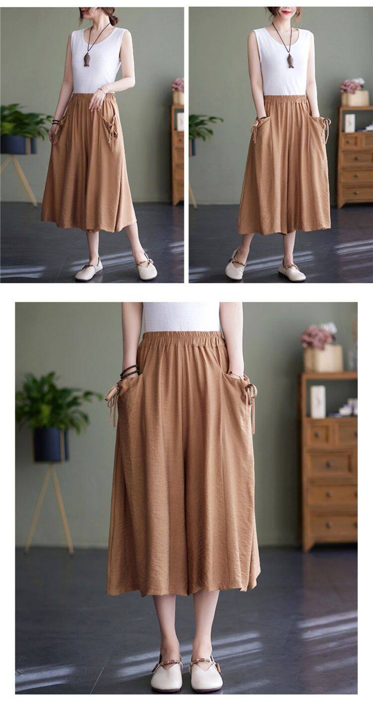 Cotton Seven-point Pants Skirt Women's Summer New Korean Casual Loose Simple Wide Leg Pants Large Size