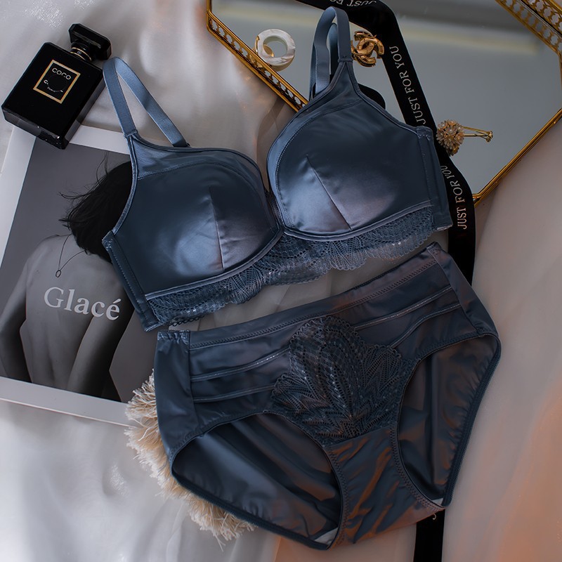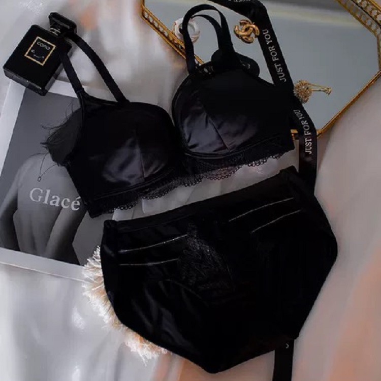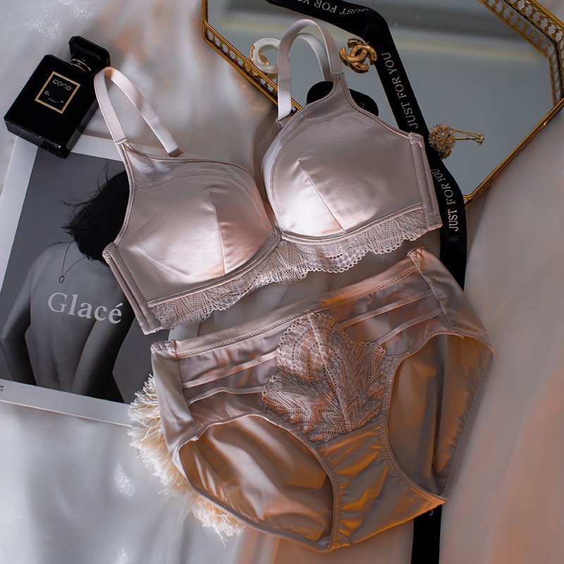 (HOT) New 6938 Entity Hot Sale Seamless High-End Satin Underwear Women's Small Chest Push up Comfortable Wireless Set