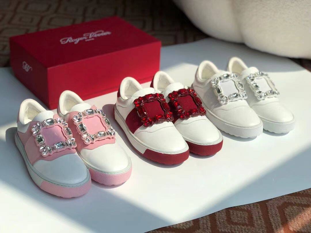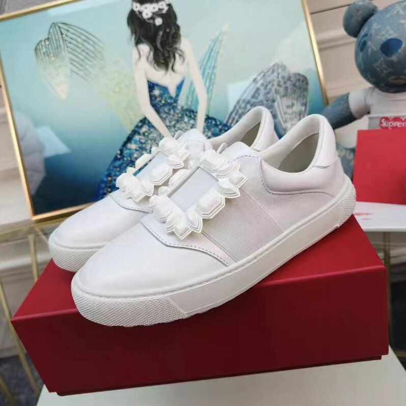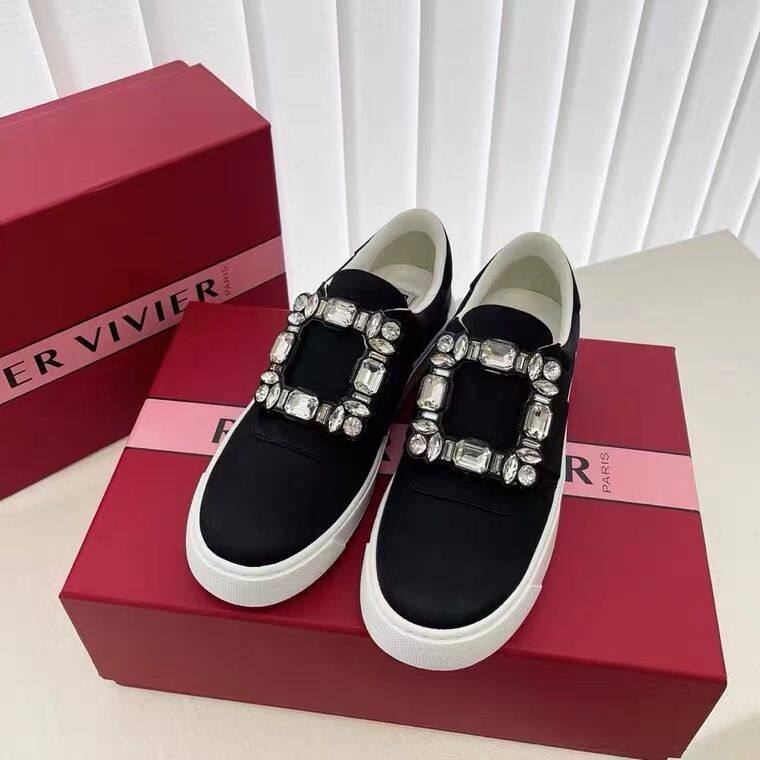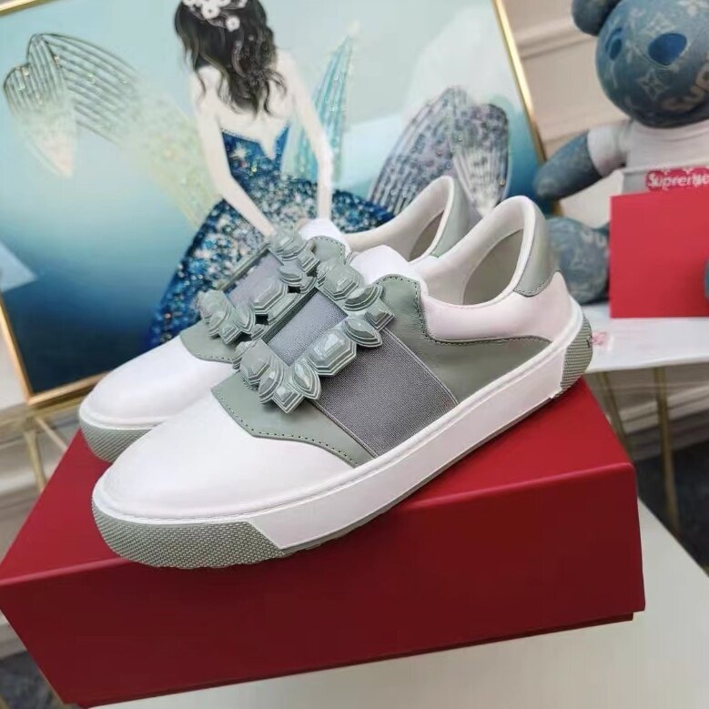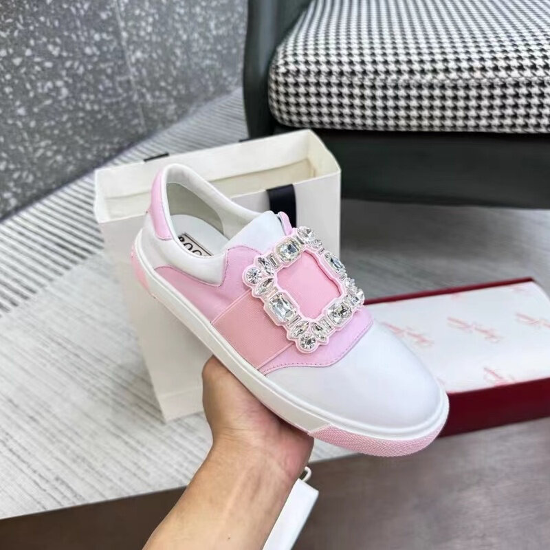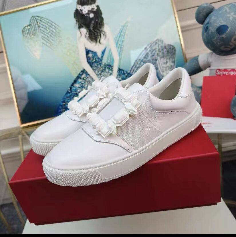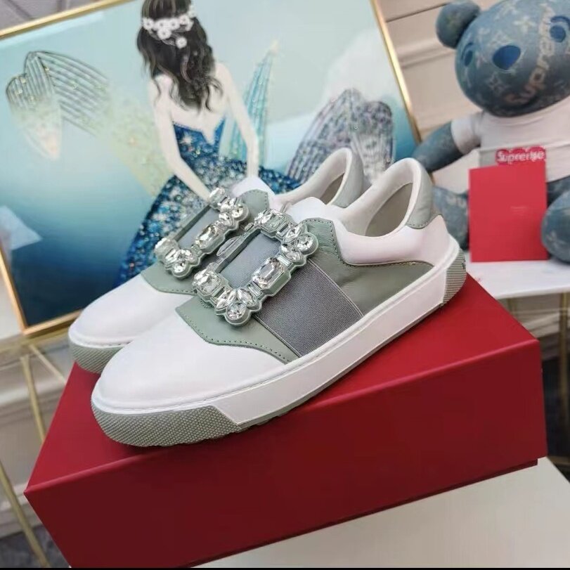 New high-definition 2023 rhinestone square buckle round toe roger vivierˉsports women's shoes slip on soft flat bottom casual white shoes