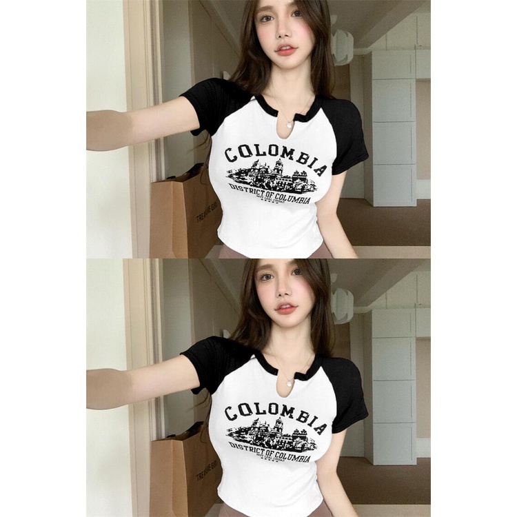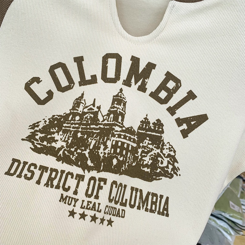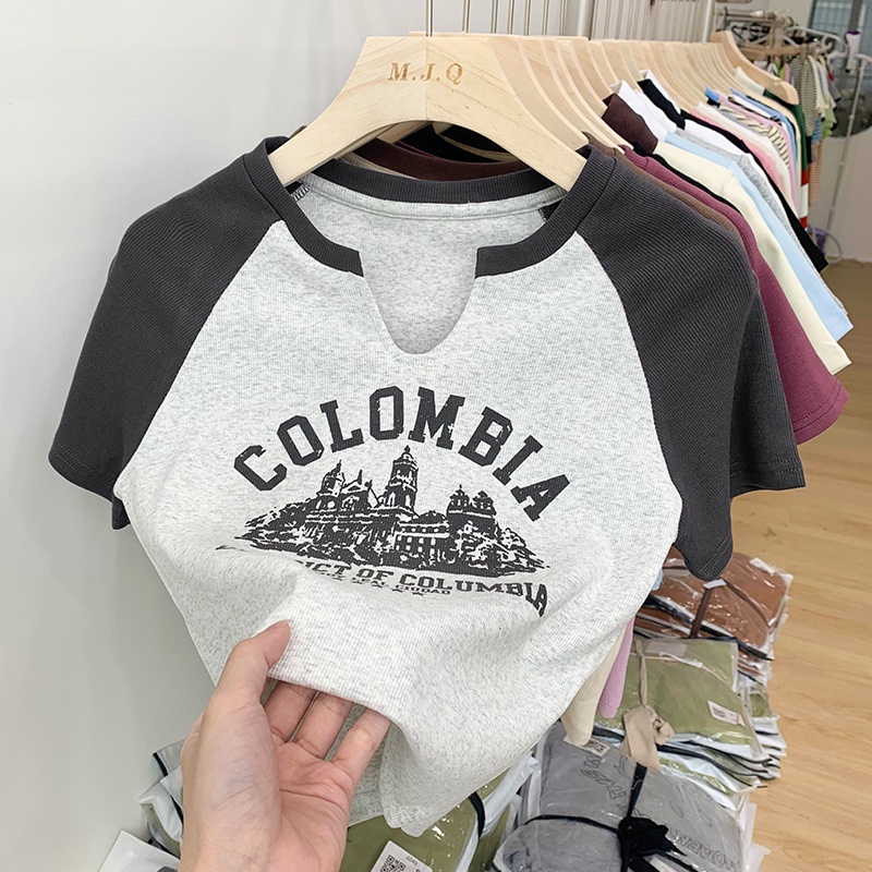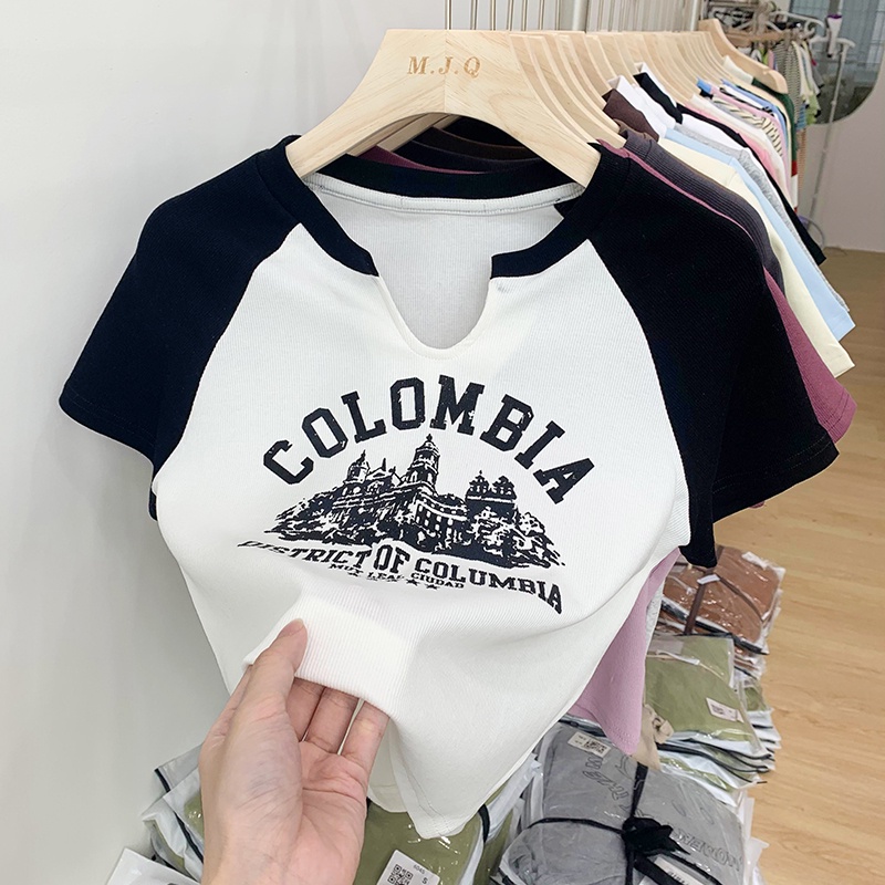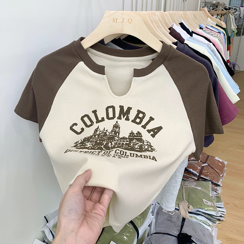 M8255 Retro T Shirt Crop Top Short Sleeve Printed Short T Shirt