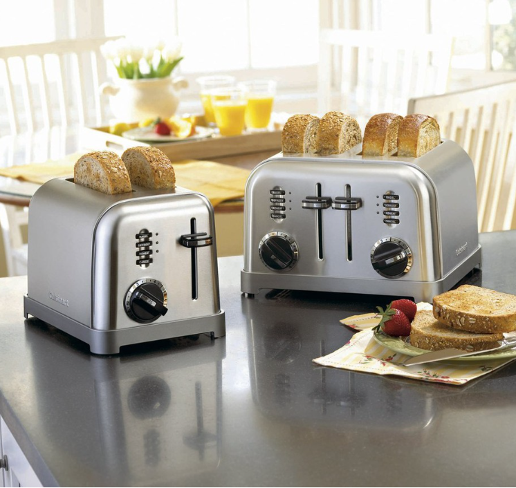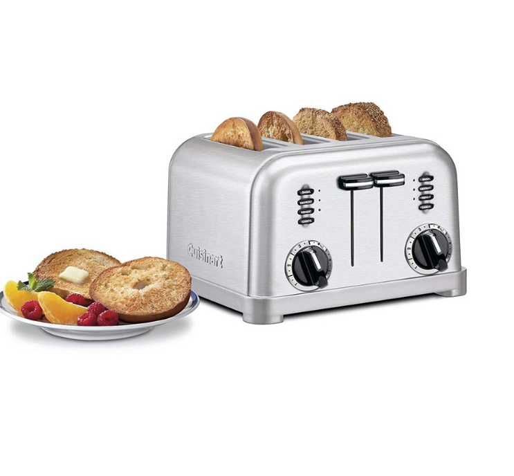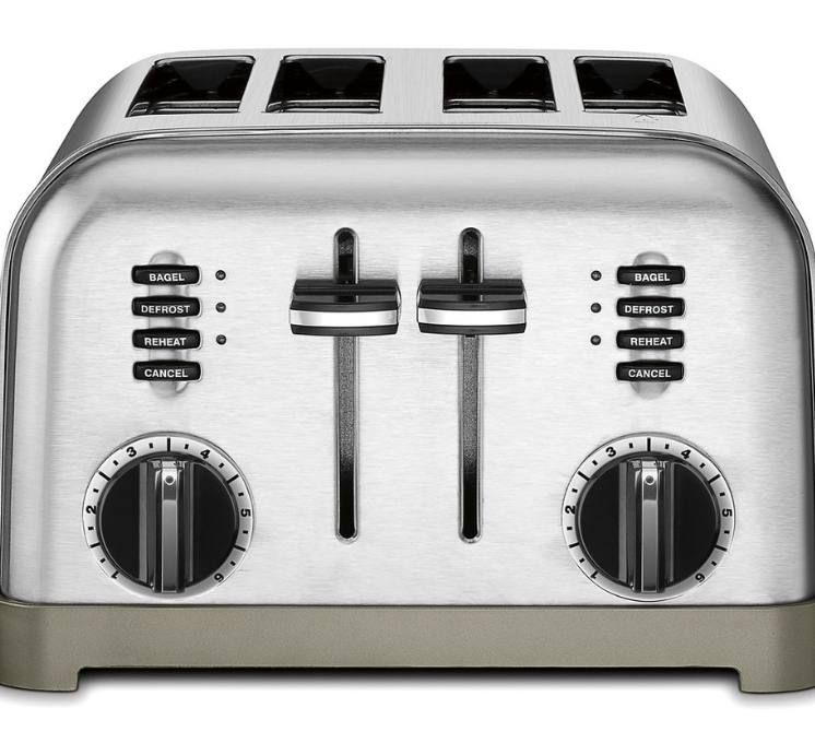 Cuisinart Stainless Steel 4-Slice Toaster CPT-180KR Brushed Stainless 1.5-inch wide toasting slots With two control panels, two 6-setting browning dials, dual reheat, defrost and bagel buttons with L