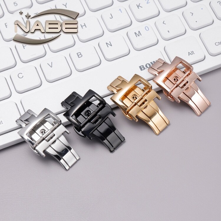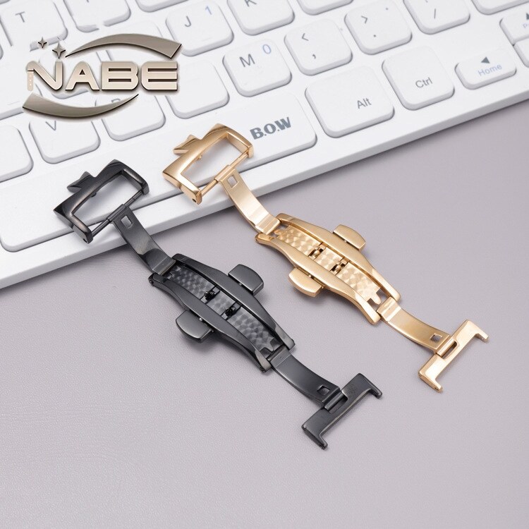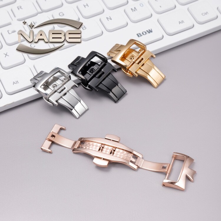 Fashion watch band☾ Swiss nabe black silver gold rose gold double press butterfly buckle buckle Vacheron Constantin leather strap buckle 18-22mm