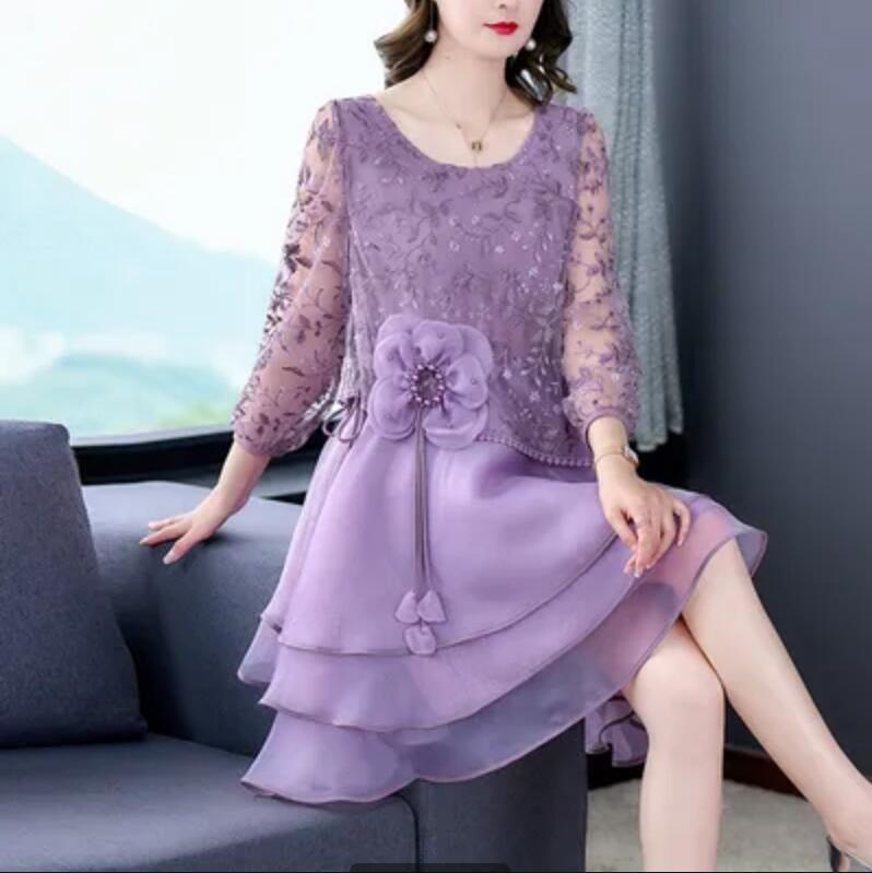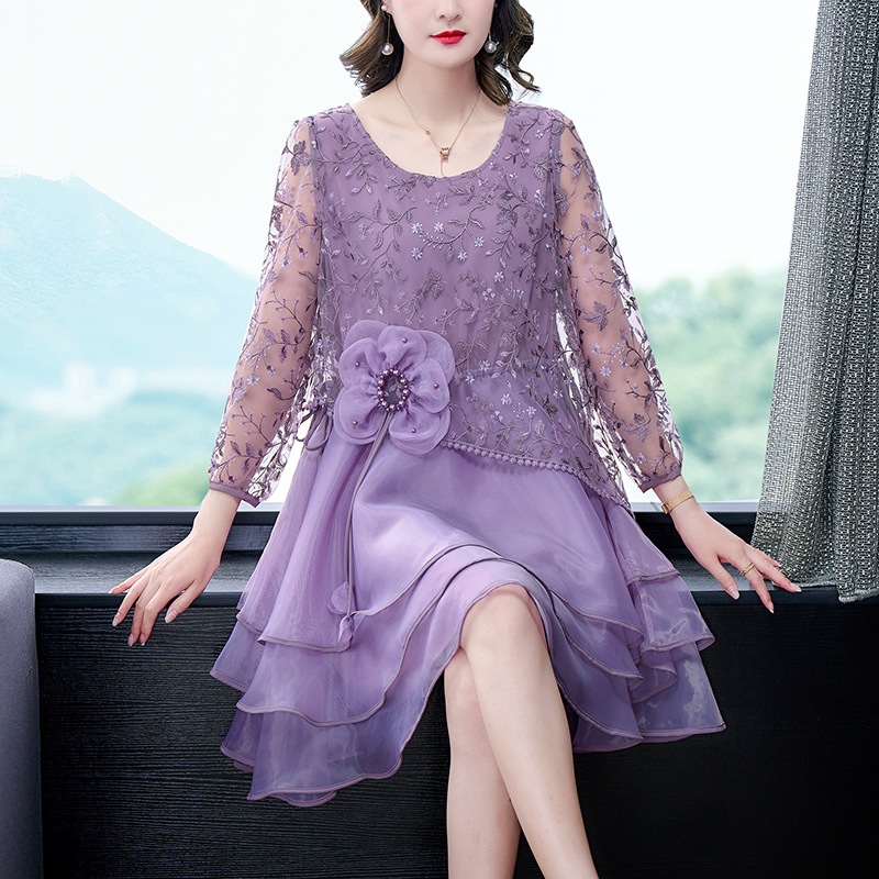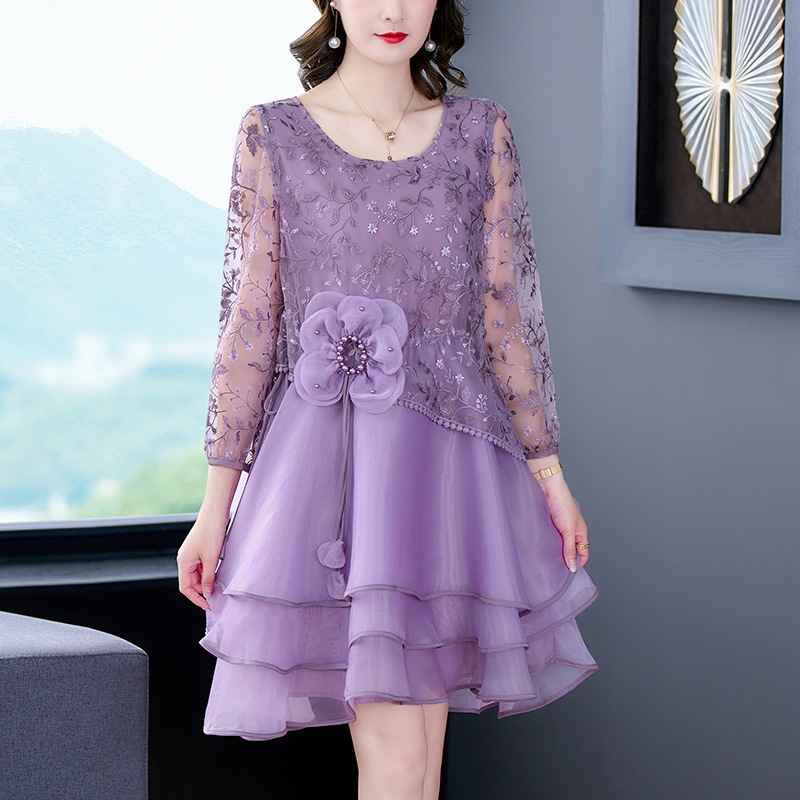 rge size women's heavy dustry mesh embrdery dress summer 23 new m high-end foreign style age-reducg dress wholesale C423┋◈✟