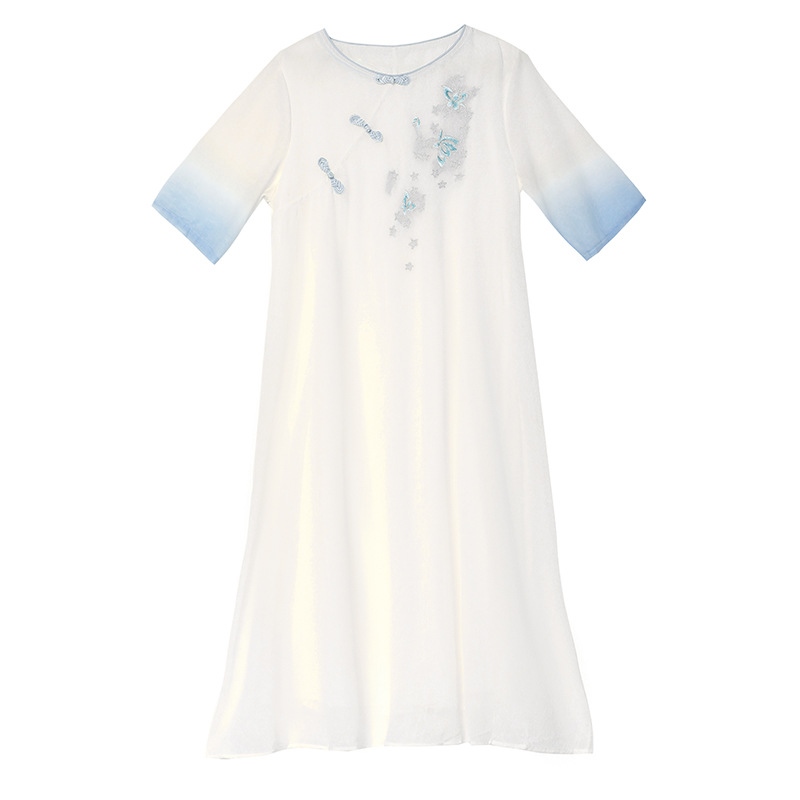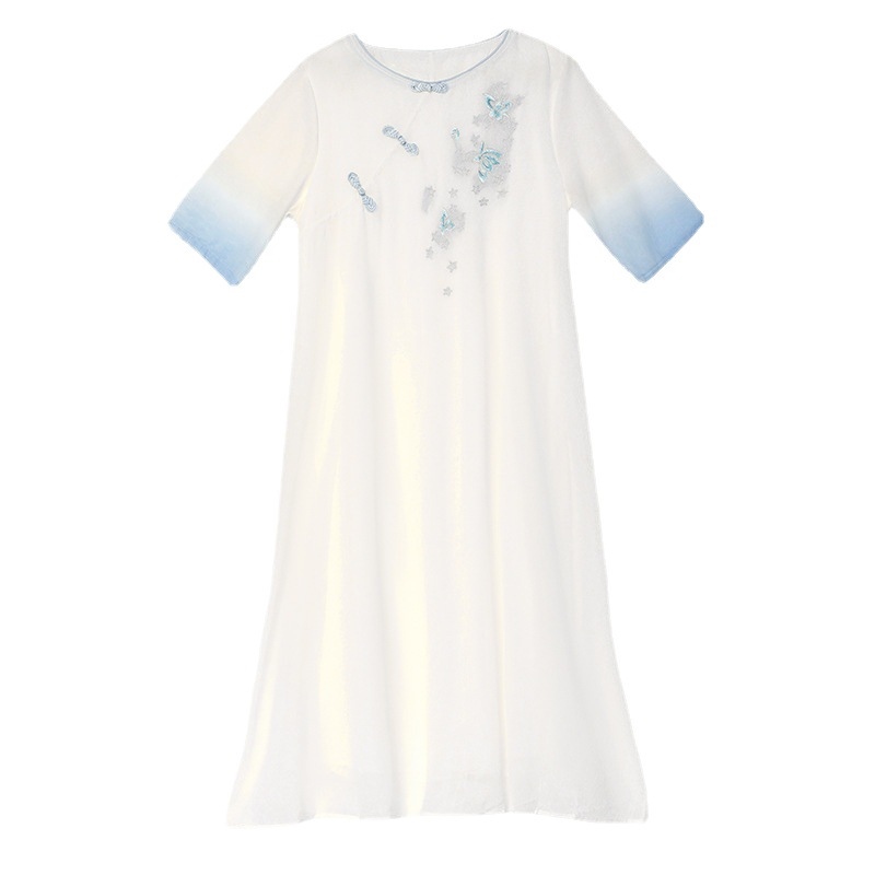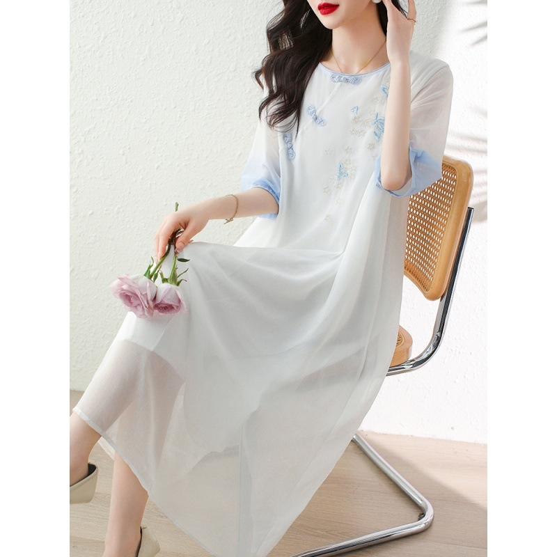 23 summer new improved m's high-end new Chese style large size women's loose short-sleeved embrdery dress C423✗☂☢