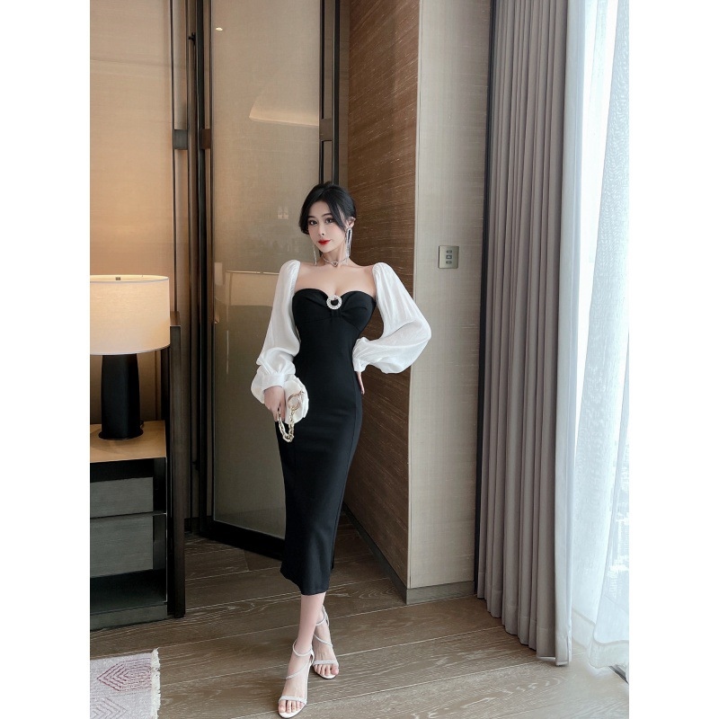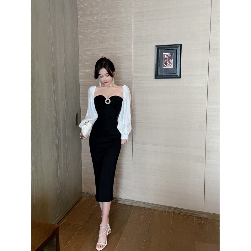 nquet Party Eveng ess High-end Contrastg Puff Sleeve Tube Top ng ess A425△