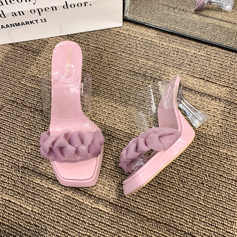 2023 Women's High-Heeled Slippers New Dress Fairy Style Sandals Women's Rhinestone Stiletto Square Toe High Heels