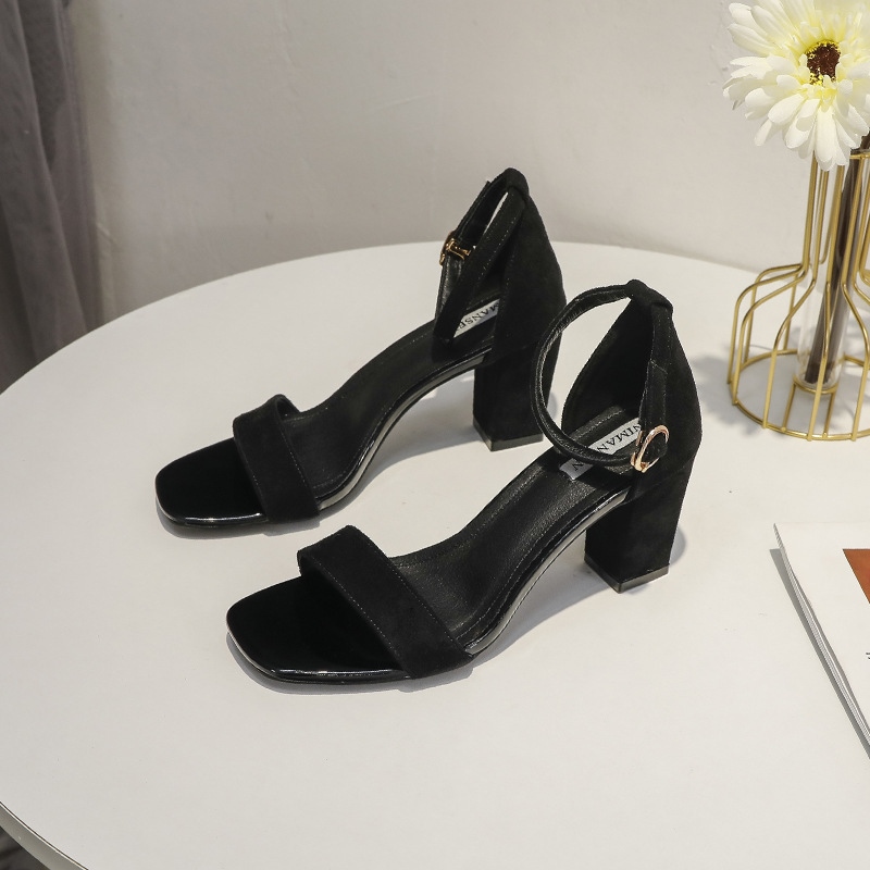 Fashion s women's 22 new summer all-match one-word buckle simple fairy style chky high-heeled shoes tide C427✌◈❀