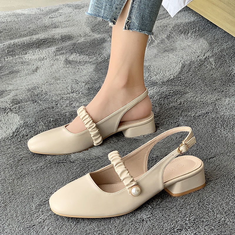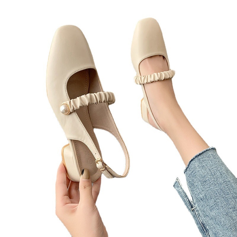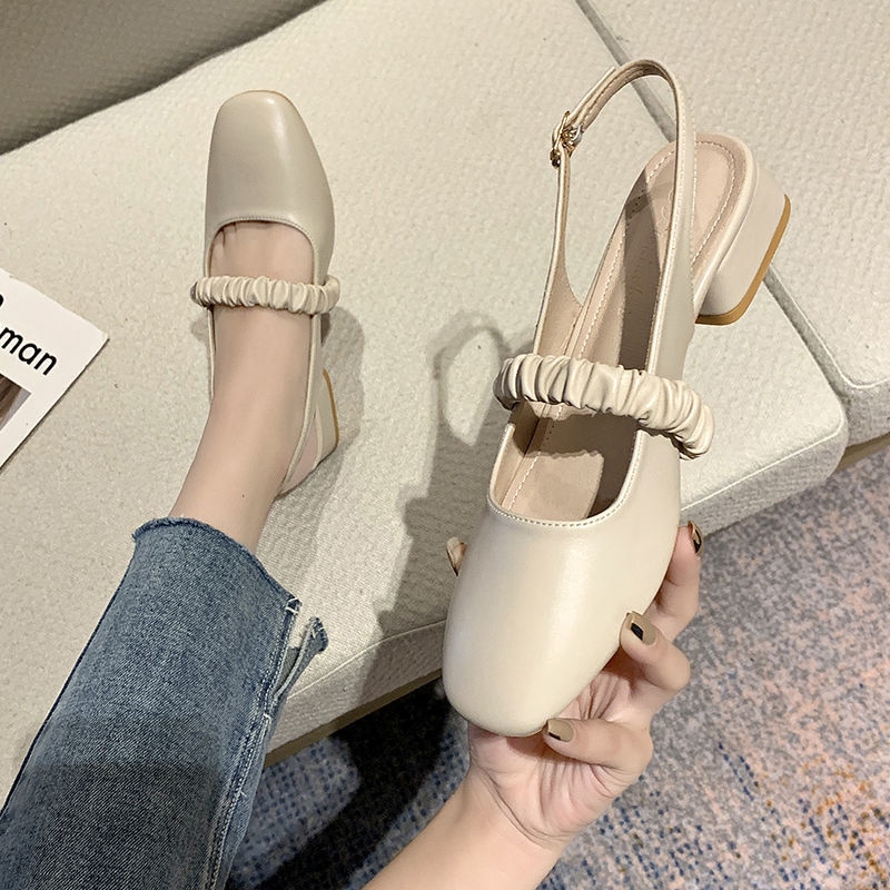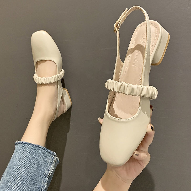 Closed Toe French Style Women's Sandals New 2023 Women's Shoes Summer R Chunky Heel High Heels Fairy Style Mid Heel Mary Jane