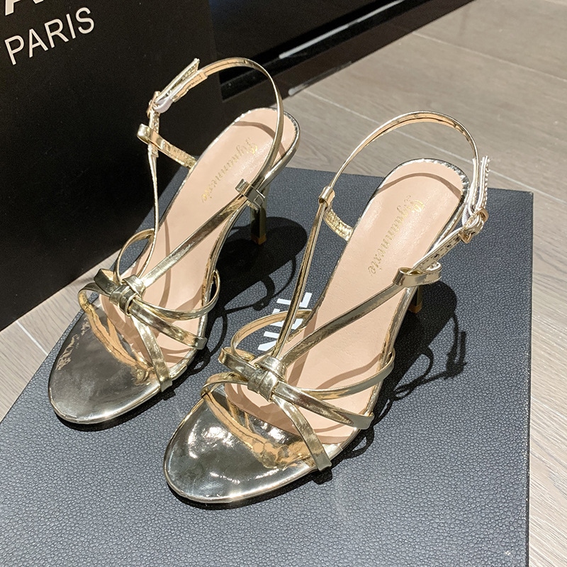 ls women's 23 new gold high-heeled s open-toed buckle stto high-heeled shoes fairy style C427◊✓