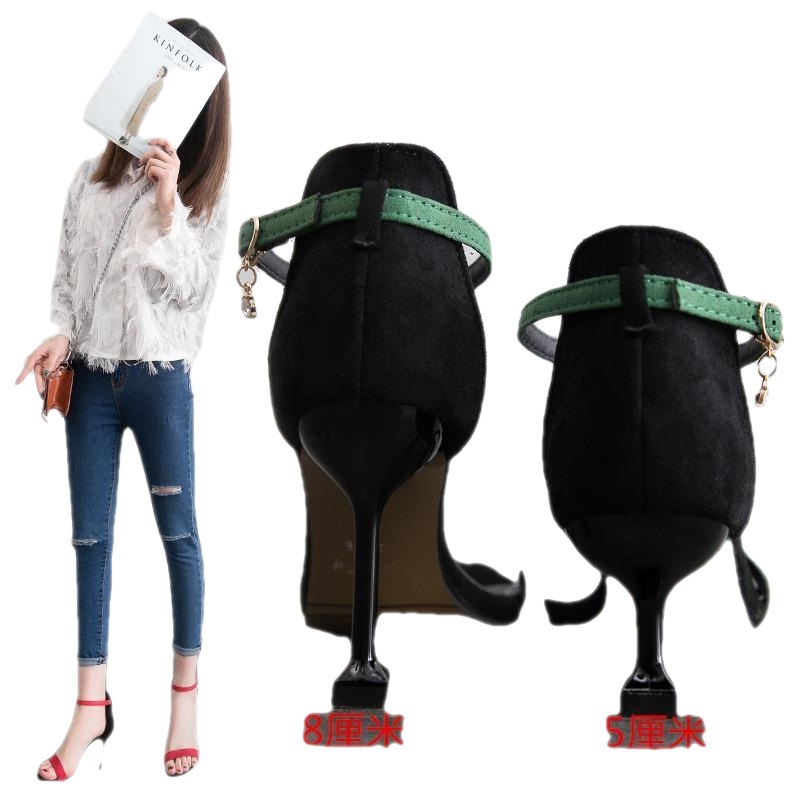 Ad s women's 21 summer new black open toe buckle stto all-match net red fairy style high heels C427△☃
