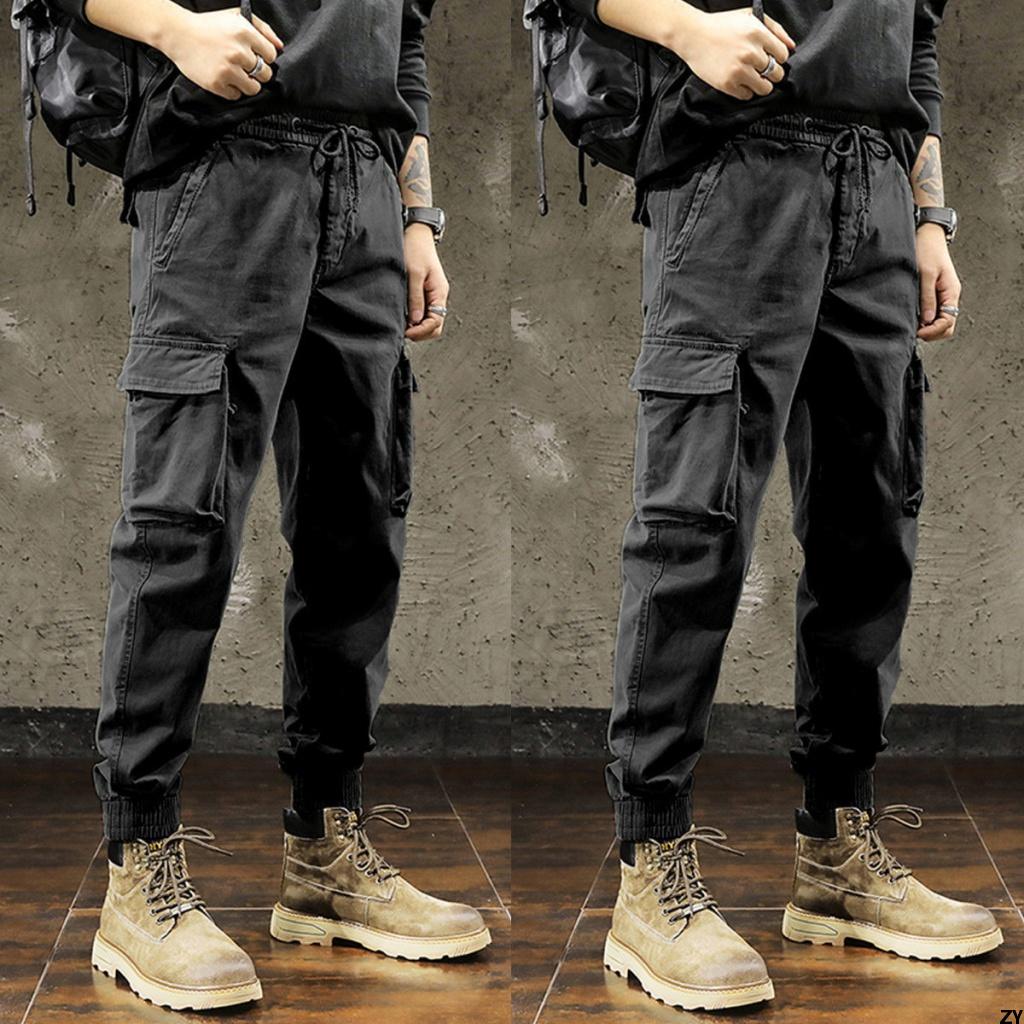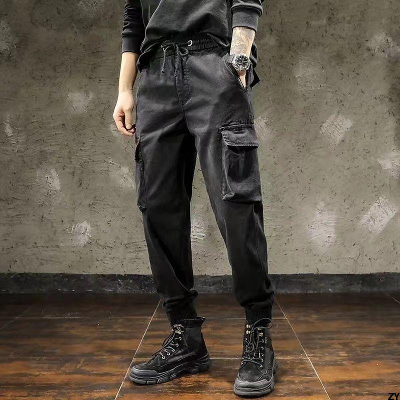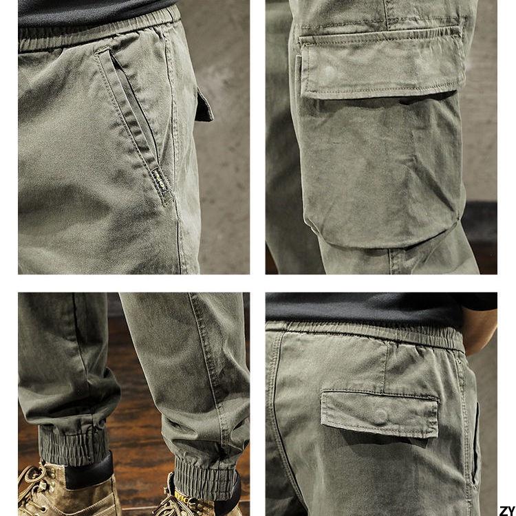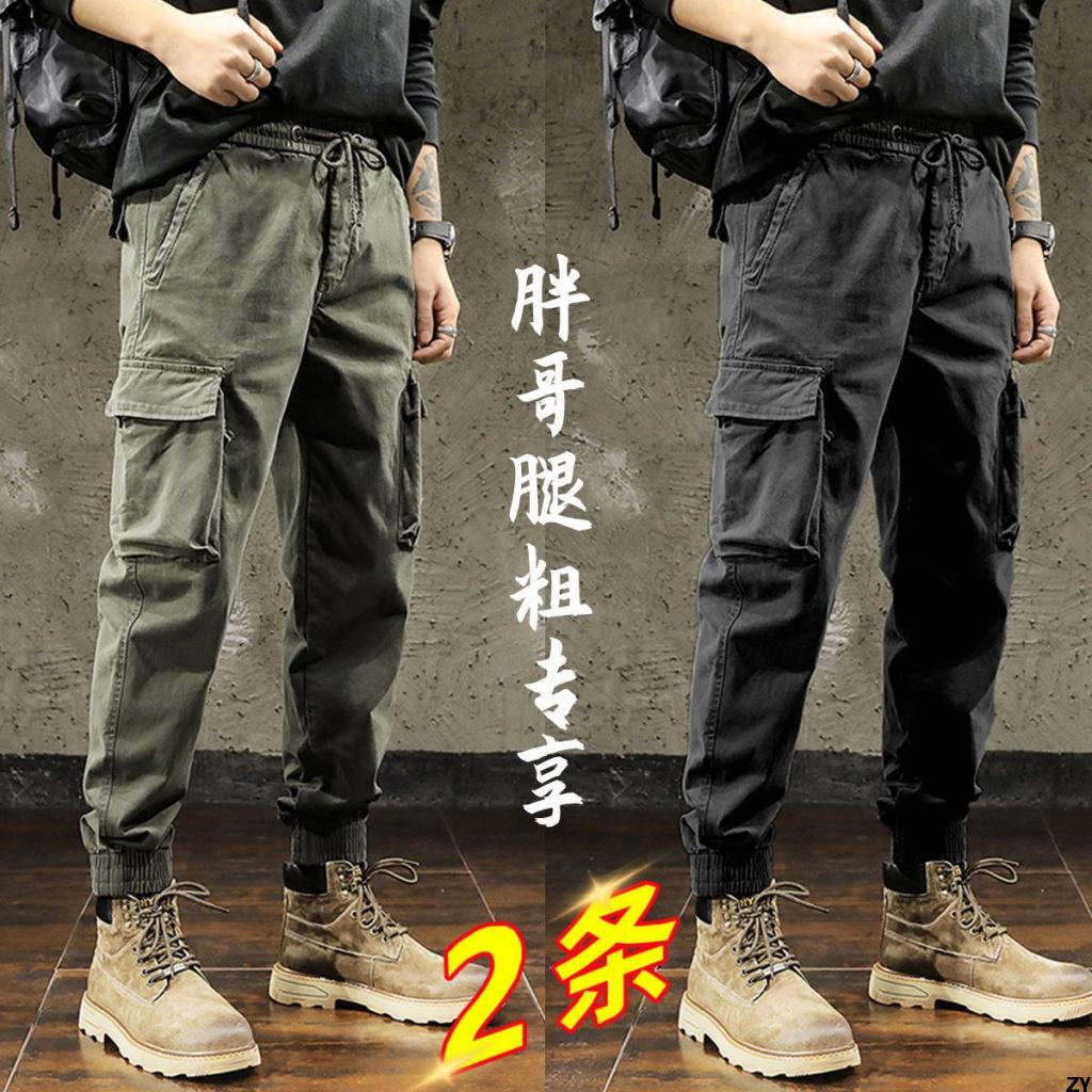 Wear-Resistant Fashion nd Multi-Pocket Hong Kong Style Pants Sports Pants Men's plus Size Workwear Casual Pants Fat Brother Ankle-Tied Loose