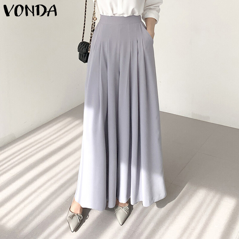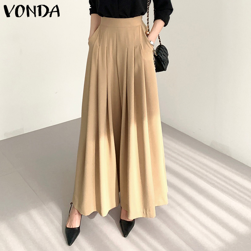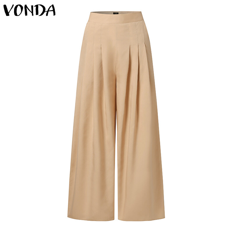 Forevercan VONDA Women's Formal Office Pleated Solid Trousers Business Leisure Straight Wide Leg Pants