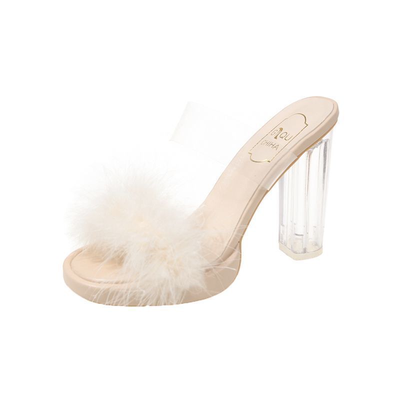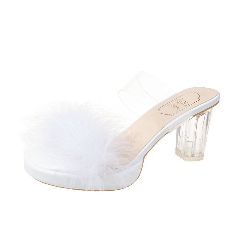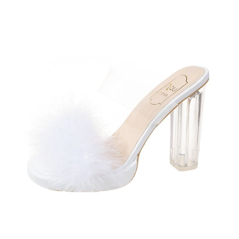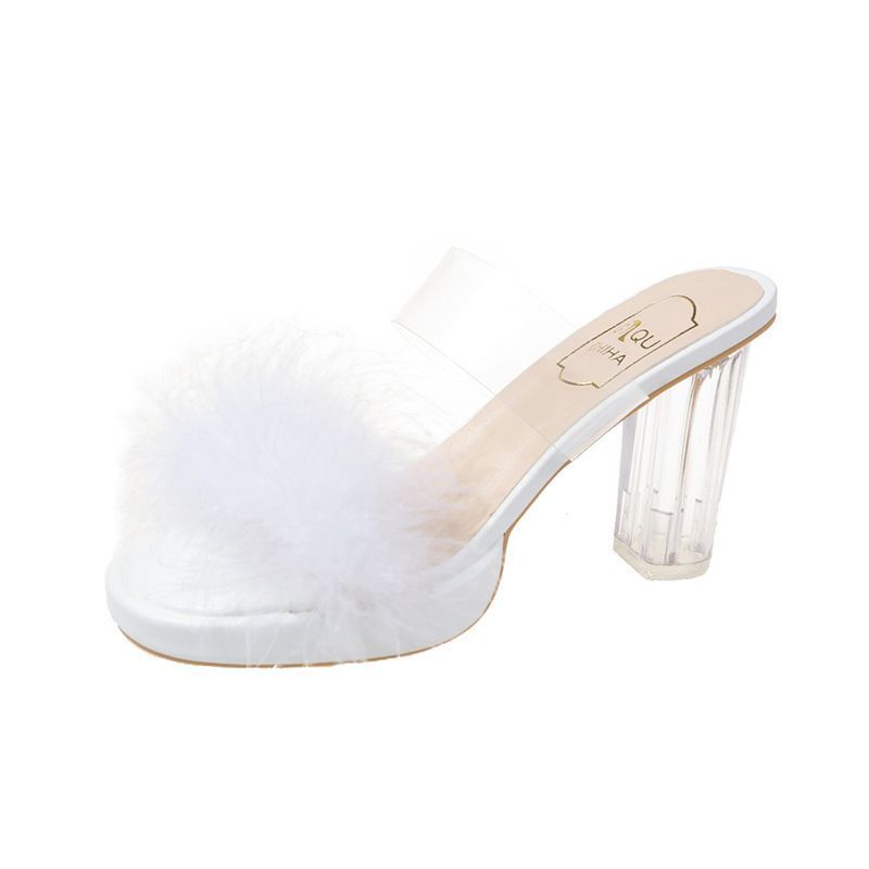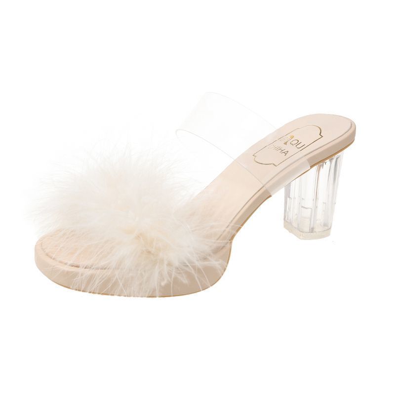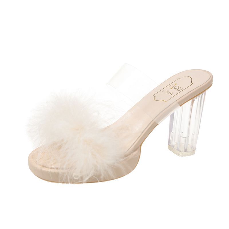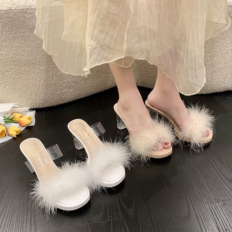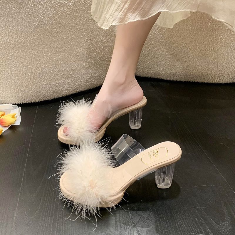 Internet Celebrity Fairy Style Furry Slippers for Women Summer Outdoor Wear 2023 New Crystal Heel Chunky Heel High Heel Slippers