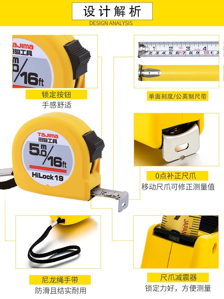 ✴◐❉ Japan tajima Tajima tape measure 5 meters metric steel tape measure ruler circle inch 2/3.5/7.5 meters
