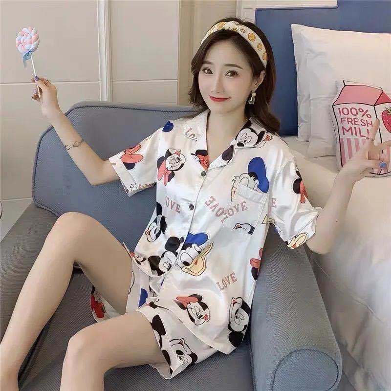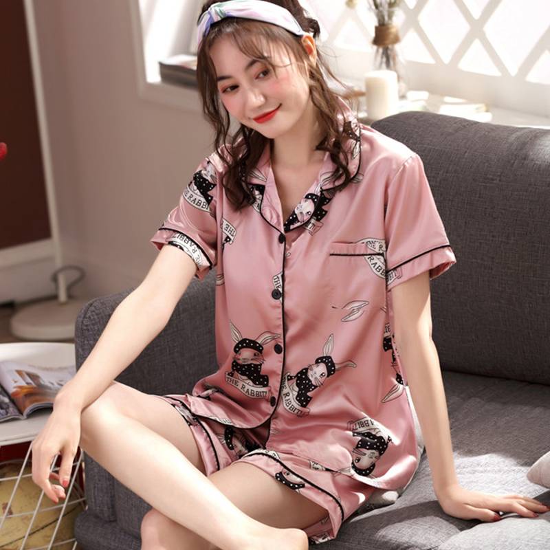 Summer pajamas women 39 s short sleeve ice silk sexy ladies thin size spring and autumn Korean version of silk home clothing setqqss1233.my20230215013954