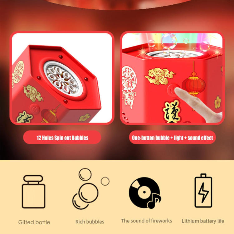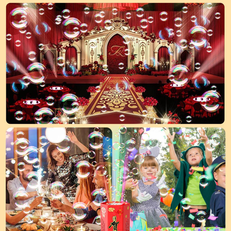 Looking for a fun and child-friendly way to create a festive atmosphere? Try our electric bubble machine! It can output bubbles like a firework, filling the air with dreamy bubbles. It's easy to operate: just add bubble solution and press the switch. Whether it's for a birthday party, a wedding, or a family gathering, our electric bubble machine will make it a memorable event! This electric bubble machine will bring you joy and fun. It will make your kids and guests happy and amazed with the firework bubbles and musical effects. It will also create a romantic and festive atmosphere for your special occasions. Don't wait any longer to get this electric bubble machine. Order now and enjoy the magic of firework bubbles!