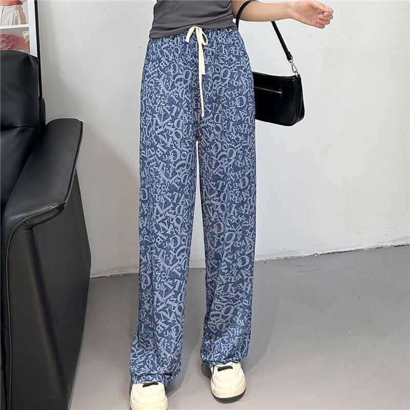 Features:Women's Casual Fashion Loose High Waist Wide Leg Denim Pants