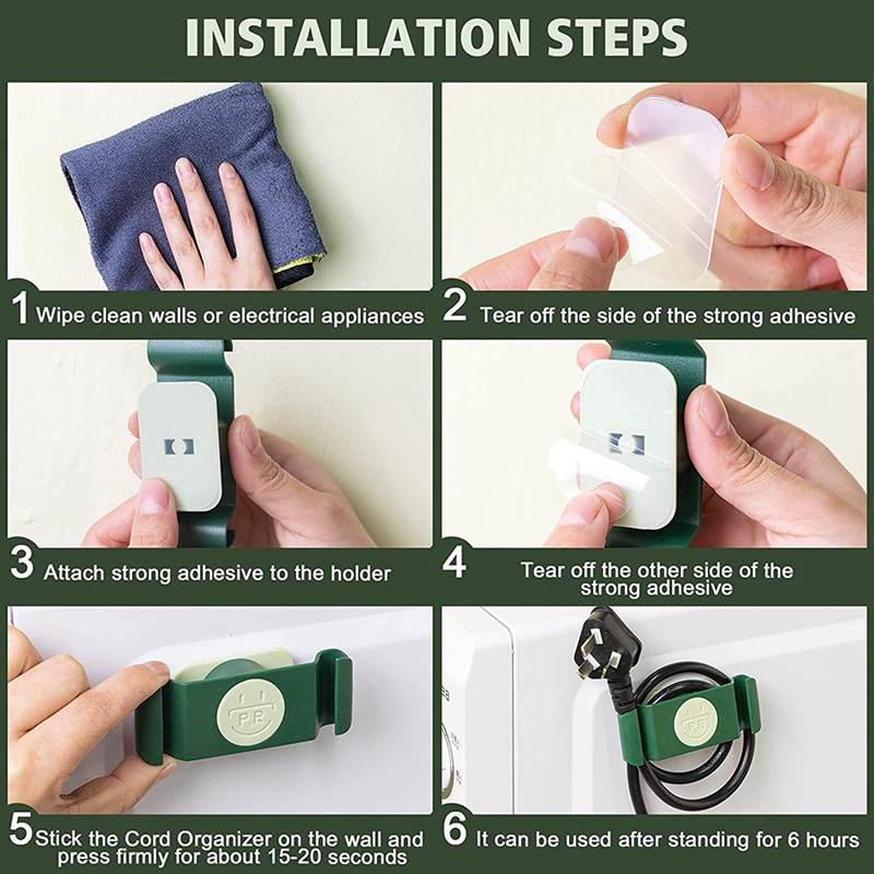 Use Tips: clean and wipe the surface to be installed, making no dirt, dust and oil stains left, and then stick the cord holder for appliances on the wall and press for about 15-20 seconds for secure adhesion, simple and effortless, and it is recommended to use after 6 hours