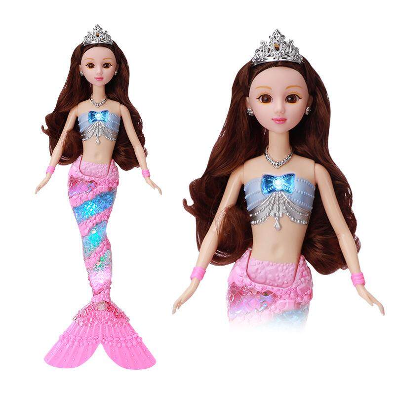 【 Dolls With Music Lighting 】Barbie Doll Set Girl Toy Gift Box with Mermaid Shape and Music Lighting Children's Birthday Gift