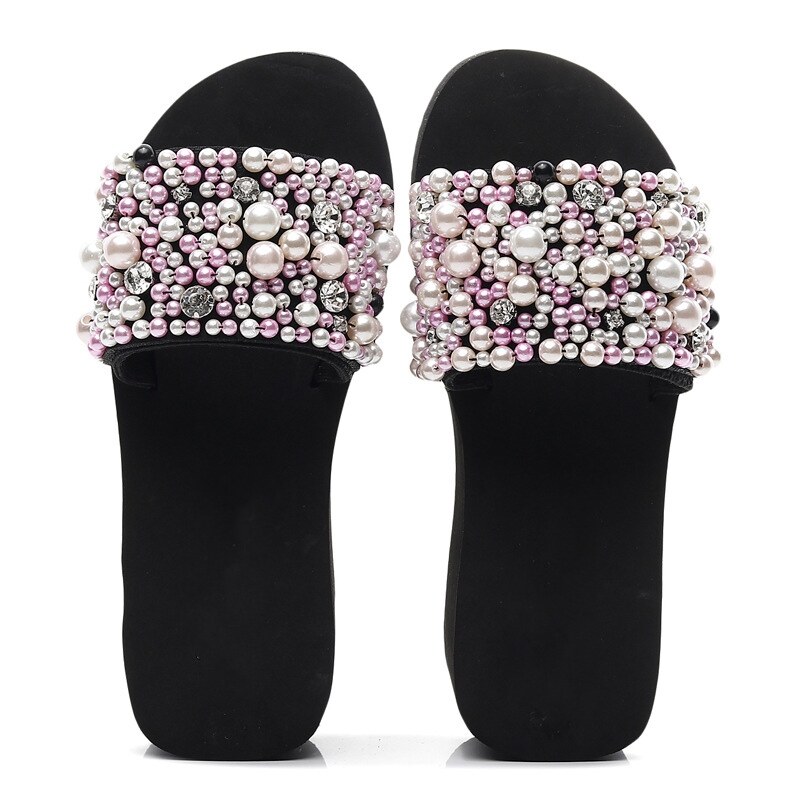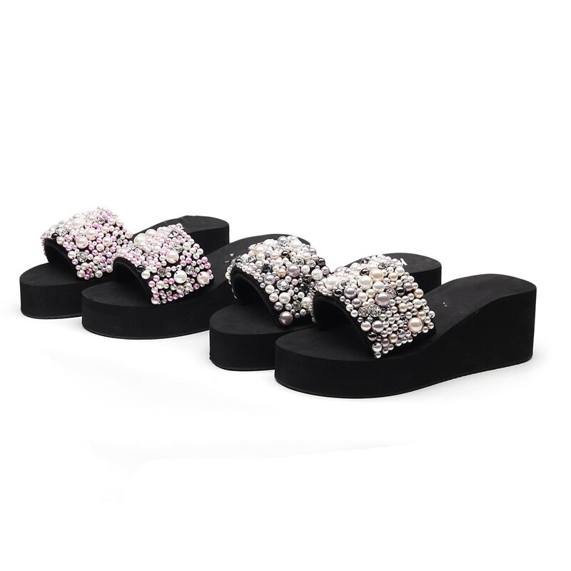 [GANG HUA] Zapatillas de playa con perlas para mujer chanclas a la moda con fondo grueso para exteriores de lujo