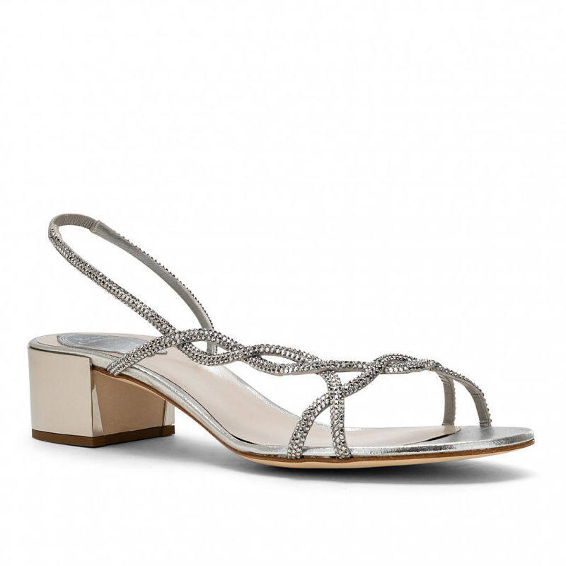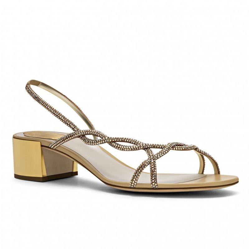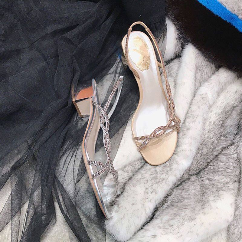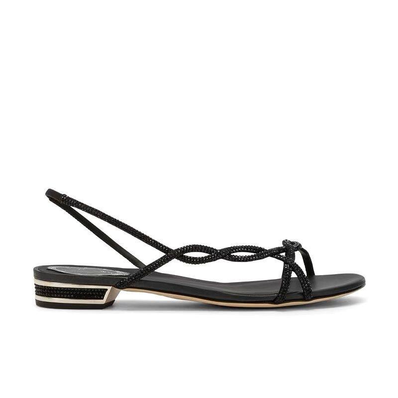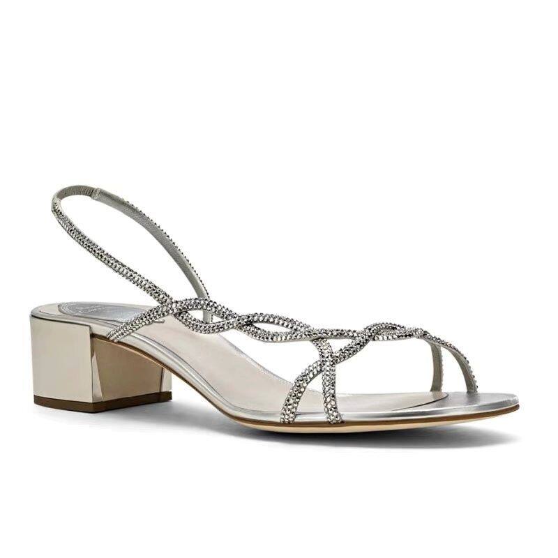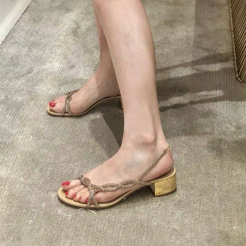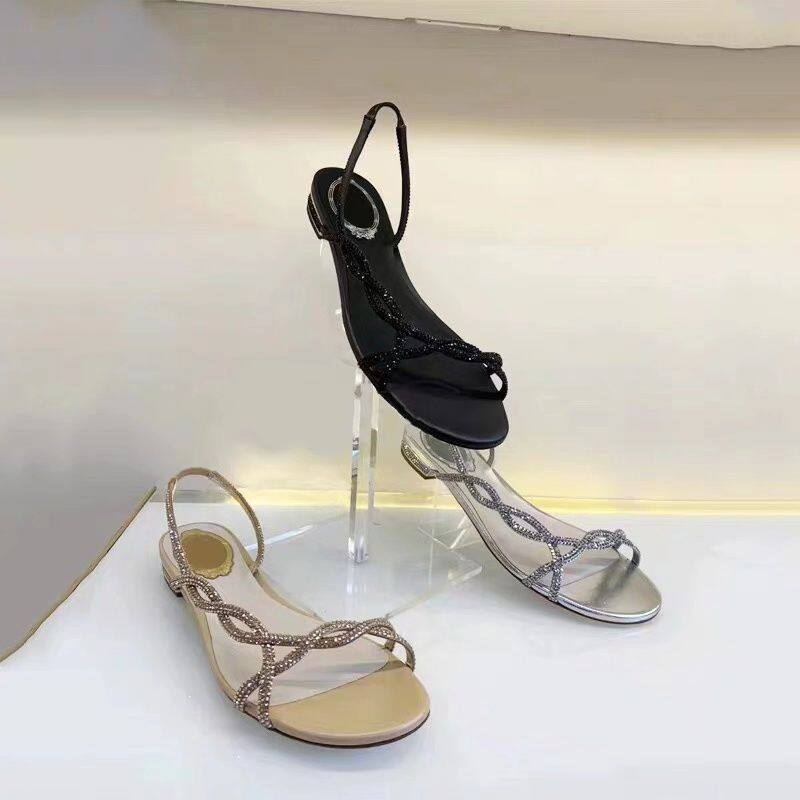 New Rene Caovillaˉsnake-shaped winding thick-heeled flat sandals intertwined fairy Roman buckle sandals rhinestone high heels